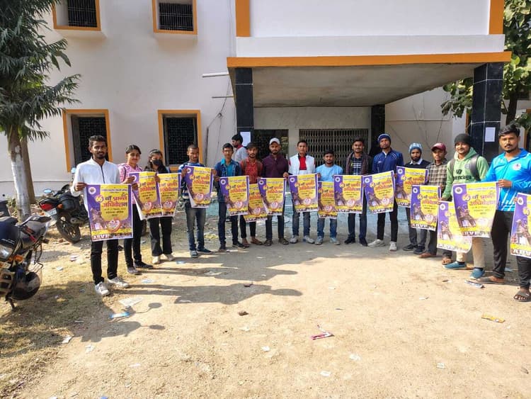 जमुई. शहर स्थित केकेएम कॉलेज परिसर में बुधवार को अखिल भारतीय विद्यार्थी परिषद जमुई इकाई द्वारा दक्षिण बिहार प्रांत के 66वें प्रांत अधिवेशन का पोस्टर विमोचन नगर मंत्री अमन कुमार की अध्यक्षता में किया गया. बताते चलें कि हर वर्ष की भांति इस वर्ष भी अभाविप के प्रांत अधिवेशन 24, 25, 26 एवं 27 दिसंबर को आरा में होना है. कार्यक्रम की सफलता को लेकर तैयारियां शुरू हो गयी हैं. दक्षिण बिहार के अंतर्गत सभी इकाइयों में पोस्टर विमोचन किया जा रहा है, इसी कड़ी में जमुई इकाई के कार्यकर्ताओं द्वारा भी अधिवेशन का पोस्टर विमोचन किया गया. मौके पर विभाग संयोजक आकाश कश्यप, नगर मंत्री अमन सिंह चंदेल, छात्रसंघ अध्यक्ष शिपू कुमार, प्रदेश कार्यकरणीय सदस्य कुंदन कुमार, जिला छात्रा प्रमुख श्रुति प्रभात, कॉलेज मंत्री, अभिनय कुमार, अनुज कुमार, कॉलेज कार्यालय मंत्री शुभम कुमार, आजाद कुमार, पूजा कुमारी, सत्यम कुमार आदि कार्यकर्ता मौजूद थे.