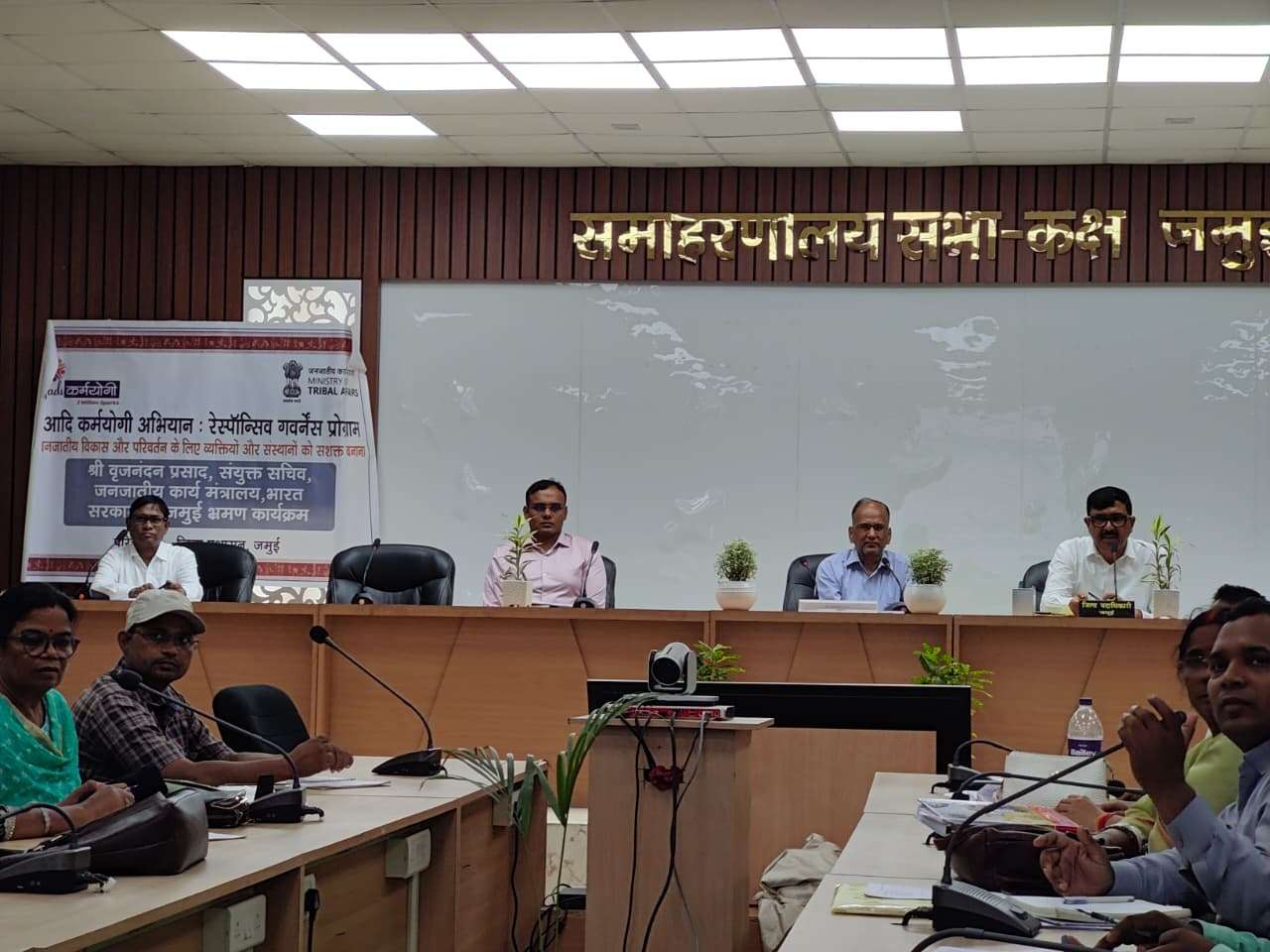जिले में कर्मयोगी अभियान की समीक्षा बैठक जमुई. भारत सरकार के जनजातीय कार्य मंत्रालय के संयुक्त सचिव बृजनंदन प्रसाद ने शनिवार को आदि कर्मयोगी अभियान को लेकर समाहरणालय सभा कक्ष में समीक्षा बैठक की. बैठक की अध्यक्षता डीएम श्री नवीन ने आदि कर्मयोगी अभियान के तहत जिले में संचालित योजना के बाबत विस्तृत जानकारी दी. उन्होंने बताया कि इस अभियान के तहत जिले के कुल 91 गांवों को चिह्नित किया गया है. इन गांवों में अनुसूचित जनजाति समुदाय के लोगों को सरकारी योजनाओं का लाभ सुलभ कराने हेतु कार्य किया जा रहा है. अभियान के तहत प्रत्येक चिह्नित गांव में आदि सेवा केंद्र की स्थापना की जा रही है. अब तक 67 गांवों में सेवा केंद्रों की स्थापना पूरी हो चुकी है. इस अभियान के सफल क्रियान्वयन को लेकर जिला स्तर पर 06, प्रखंड स्तर पर 30 और पंचायत स्तर पर 291 पदाधिकारी व कर्मियों को प्रशिक्षण दिया गया है. 91 चिह्नित गांवों के लिए विलेज एक्शन प्लान तैयार किया जा रहा है. आगामी 02 अक्तूबर को विशेष ग्राम सभा में पारित कर ग्राम पंचायत विकास योजना (जीपीडीपी) में शामिल किया जायेगा. बैठक में वन प्रमंडल पदाधिकारी, डीडीसी, सीएस, जिला पंचायती राज पदाधिकारी, जिला कल्याण पदाधिकारी, जिला परियोजना पदाधिकारी, सहित जिला व प्रखंड स्तर के मास्टर ट्रेनर उपस्थित रहे.