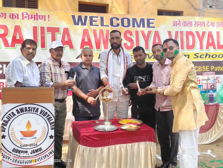 गिद्धौर. प्रखंड क्षेत्र के गंगरा स्थित अपराजिता आवासीय विद्यालय परिसर में विद्यालय प्रबंधन की ओर से होली मिलन समारोह का आयोजन उत्साह एवं उल्लास के साथ किया गया. कार्यक्रम में छात्र-छात्राओं, शिक्षकों एवं अतिथियों ने मिलकर रंगों के पर्व का संदेश साझा किया. समारोह में मुख्य अतिथि के रूप में बाबा कोकिलचंद मंदिर के उपाध्यक्ष नीरज सिंह सहित वशिष्ठ सिंह उर्फ छोटे सिंह, गिद्धौर थाना के अवर निरीक्षक पंकज सिंह, मुकेश कुमार सिंह, गिद्धौर सेंट्रल स्कूल के कुमार दिव्यांश उर्फ दीप सिंह, गणेश कुमार रावत एवं संतोष सिंह सहित कई गणमान्य लोग उपस्थित रहे. कार्यक्रम की शुरुआत विद्यालय निदेशक आशीष कुमार सिन्हा के निर्देशन में की गई. मौके पर प्रखंड कल्याण पदाधिकारी सह शिक्षा पदाधिकारी नीलेश कुमार ने विद्यालय प्रबंधन की सराहना किया. उन्होंने कहा कि होली पर्व सामाजिक सद्भाव, आपसी प्रेम एवं पर्यावरण संरक्षण का संदेश देता है. उन्होंने लोगों से फ्रेंडली होली मनाने की अपील की गयी. बच्चों ने सांस्कृतिक गतिविधियों और आपसी रंग-गुलाल के माध्यम से उत्सव की खुशियां साझा कीं. कार्यक्रम के दौरान पूरा विद्यालय परिसर उत्सवमय माहौल में रंगों और उमंग से सराबोर नजर आया. समारोह में बड़ी संख्या में अभिभावक, शिक्षक एवं स्थानीय गणमान्य लोग उपस्थित रहे.