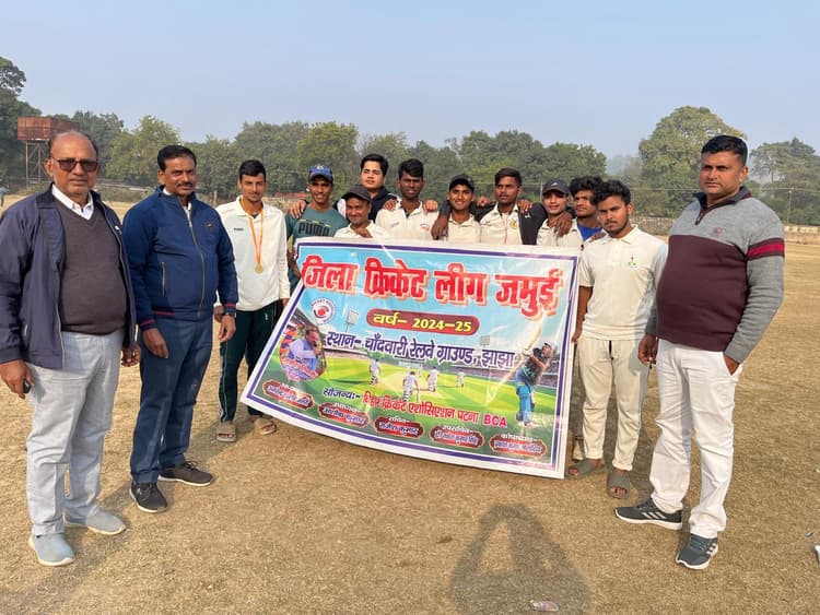 झाझा. रेलवे चांदमारी मैदान में चल रहे जिला क्रिकेट लीग मैच में शुक्रवार को एआरआर जमुई की टीम ने लक्ष्मीपुर टीम को 75 रनों से हरा दिया. टॉस जीतकर बल्लेबाजी करते हुए जमुई टीम ने निर्धारित 30 ओवर में 218 रन बनाए. लक्ष्य का पीछा करने उतरी लक्ष्मीपुर की टीम 24 ओवर में अपना सभी विकेट खोकर 143 रन ही बना सकी. जमुई टीम के खिलाडी़ अजमल के बेहतरीन खेल पर उन्हें मैन ऑफ द मैच का पुरस्कार मुख्य अतिथि डॉ श्यामसुंदर दीनबंधु द्वारा दिया गया. अंपायर की भूमिका में वसीम व अंकित थे. खेल मैदान में कपिल डेंटल क्लीनिक के चिकित्सक व जिला संयुक्त सचिव डॉ राकेश कुमार, टीम सिलेक्टर गौरीशंकर पाल, अमित कुमार, मो जावेद समेत कई लोग मौजूद थे.