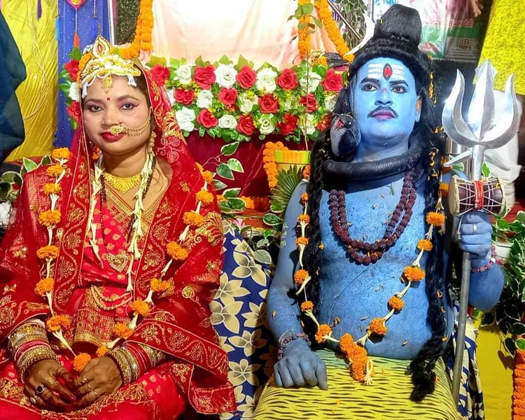 गिद्धौर. पतसंडा पंचायत के वार्ड दो स्थित बैकुंठ भवन में चल रहे श्रीमद भागवत कथा सप्ताह ज्ञान यज्ञ में देर संध्या कथा व्यास श्रीकांत शास्त्री ने शिव पार्वती विवाह का प्रसंग का वर्णन किया. इस विवाह प्रसंग को सुन श्रद्धालु भाव-विभोर हो गए. इस दौरान शिव पार्वती विवाह की भव्य झांकी का चरित्र चित्रण किया गया. ये झांकी श्रद्धालुओं के बीच आकर्षण का केंद्र बनी रही, विवाह प्रसंग के दौरान शिव पार्वती की झांकी पर श्रद्धालुओं ने पुष्प बरसाये. देवाधिदेव शिव एवं माता पार्वती के इस विवाह में श्रद्धालु झूमकर विवाह गीत गाने लगे. झांकी में शिव की भूमिका में ध्रुवनाथ झा जबकि अर्चना झा ने माता पार्वती की भूमिका निभायी. इसके अलावा प्रफुल्ल झा, गौतम झा, बहादुर झा, प्रद्युमन झा एवं आर्यन झा एवं आचार्य देव जन की भेष भूषा में दिखे. प्रसंग का वर्णन करते हुए कथा व्यास श्रीकांत शास्त्री ने कहा कि पर्वत राज हिमालय की घोर तपस्या के बाद उनके घर अवतरित माता पार्वती बचपन से ही बाबा भोलेनाथ की अनन्य भक्त थीं, एक दिन पर्वतराज के घर महर्षि नारद पधारे और उन्होंने भगवान भोलेनाथ के साथ पार्वती के विवाह का संयोग बताया. उन्होंने कहा कि नंदी पर सवार भोलेनाथ जब भूत पिशाचों के साथ बरात लेकर पहुंचे तो उसे देखकर पर्वतराज और उनके परिजन अचंभित हो गए. लेकिन माता पार्वती खुशी से भोलेनाथ को पति के रूप में स्वीकार कर लिया. शिव-पार्वती प्रसंग का वर्णन करते हुए कथा व्यास श्रीकांत शास्त्री ने कहा कि शिव पार्वती की आराधना भागवत का अभिन्न अंग है. इसके श्रवण से ही मनुष्य के सारे मानसिक व आत्मीय विकारों का अंत हो जाता है. उन्होंने कहा की ईश्वर के प्रति समर्पण भाव से ही प्रभु मिलते हैं. प्रसंग में बताया कि भगवान की कथा जीवन जीना सिखाती है व सनातन धर्म के प्रति उनके जीवन में संस्कार गढ़ती है. वहीं कथा के दौरान भजन गायक गोबिंद कुमार मिश्र ने अपने सहयोगी मनोज शर्मा के साथ डम डम डमरू, भोलेनाथ स्वामी जैसे भक्ति गीतों से समां बांधा मौके पर सैकड़ों की संख्या में श्रद्धालु इस भागवत कथा में शिव विवाह के मनोरम दृश्य को देखकर मंत्रमुग्ध हो गए.