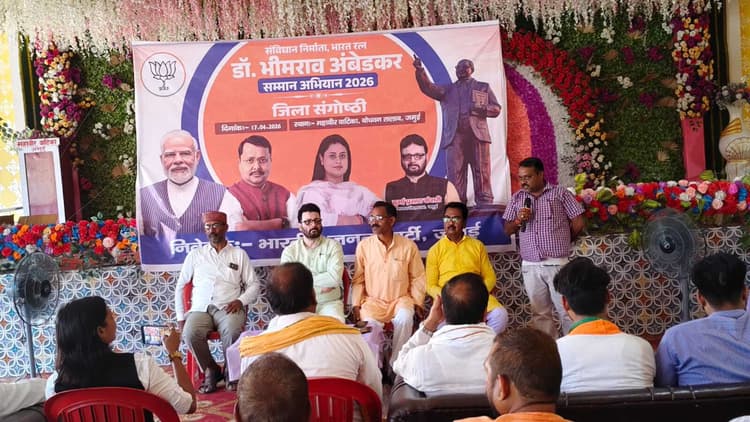 जमुई. बाबा साहब डाॅ भीम राव आंबेडकर के जयंती पखवारा के अवसर पर शुक्रवार को महावीर वाटिका में भाजपा ने जिलाध्यक्ष दुर्गा प्रसाद केसरी की अध्यक्षता में संगोष्ठी आयोजित की गयी. इस अवसर पर उपस्थित कार्यकर्ताओं ने बाबा साहब के चित्र पर पुष्पांजलि अर्पित कर श्रद्धा सुमन अर्पित की. संगोष्ठी को संबोधित करते हुए जिलाध्यक्ष दुर्गा प्रसाद केसरी ने कहा कि बाबा साहब एक समाज सुधारक, समतामूलक समाज का निर्माता के साथ साथ संविधान सभा के प्रारूप समिति के अध्यक्ष भी थे. उन्होंने जिन समाज समतामूलक समाज की रचना की वह सचमुच समाज के हर वर्ग के लोगों को उन्नति का रास्ता प्रशस्त हुआ. आज भारतीय जनता पार्टी उनके जयंती पर कोटि कोटि नमन करती है. मौके पर कार्यक्रम संयोजक अनुसूचित जाति मोर्चा के जिलाध्यक्ष जयंत चौधरी, जिला महामंत्री बृजनंदन सिंह, सोनेलाल पासवान, उपाध्यक्ष, रंजीत सिंह, विभा सिंह, अनिल दीक्षित, साधना सिंह, अजय पासवान, युवा मोर्चा अध्यक्ष अभिषेक राज, विदुभूषण सिंह, मंडल अध्यक्ष, शंभु पांडेय, कन्हैया सिंह, अखिलेश पांडेय, संजय साह, रामानंद गोस्वामी, विकास गुप्ता, सुरेंद्र तांती, ताहिर अंसारी, सुजीत मंडल, दिनेश मंडल, टुन सिंह, टुन टुन यादव, राकेश चौधरी, प्रमोद पाल, रुद्रदेव सिंह, विजय लहेरी, सुरज मुर्म उपस्थित थें.
