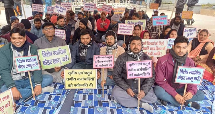 जमुई. बिहार राज्य व्यवहार न्यायालय कर्मचारी संघ के आह्वान पर जिला सिविल कोर्ट के कर्मचारियों ने गुरुवार से कलमबंद हड़ताल शुरू की. इस दौरान न्यायिक कर्मियों ने अपने मांगों के समर्थन में हाथ में तख्तियां लेकर नारेबाजी भी की. कर्मचारियों के अनिश्चितकालीन हड़ताल पर जाने के कारण न्यायपालिका की कार्य व्यवस्था चरमरा गयी और मुवक्किलों और वकीलों को परेशानी का सामना करना पड़ा. धरना पर रहे कर्मचारियों ने बताया कि बिहार राज्य व्यवहार न्यायालय कर्मचारी संघ के आह्वान पर चार सूत्री मांगों के समर्थन में यह हड़ताल की गयी है. उन्होंने बताया कि जबतक हमारी मांगे पूरी नहीं होती है तक हड़ताल जारी रहेगी.