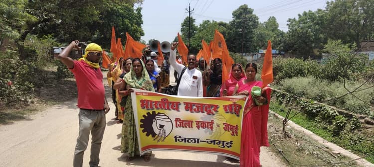 झाझा. अपनी विभिन्न मांगों को लेकर भारतीय मजदूर संघ के सदस्यों ने रविवार की सुबह संघ के महामंत्री परमेश्वर यादव की अगुवाई में रैली निकाली. इस दौरान मजदूरों ने अपनी मांगों को लेकर नारे भी लगाये. संघ के पदाधिकारी व सदस्यों ने रेलवे काॅलोनी स्थित संघ कार्यालय से रैली निकाली जो रेलवे आवास, बसस्टैंड होते हुए पुरानी बाजार स्थित बरनबाल धर्मशाला पहुंचा, जहां अधिवेशन की शुरूआत की गयी. मौके पर भारतीय मजदूर संघ के प्रदेश पदाधिकारी मनीष कुमार, बिहार प्रदेश कार्यसमिति सदस्य विश्वनाथ प्रसाद यादव, बिहार प्रदेश बीड़ी महामंत्री परमेश्वर यादव सहित अन्य कई लोग शामिल हुए. अधिवेशन में पुरानी कमेटी भंगकर नयी कमेटी का गठन किया गया. उपस्थित पदाधिकारियों ने कहा कि बीएमएस नयी कमेटी को सुचारू रूप से चलाते हुए मजबूती की स्थिति में लाया जायेगा. कार्यसमिति सदस्य ने कहा कि पंजीकृत मजदूरों का स्वास्थ्य लाभ, पोशाक राशि बंद को पुनः चालू करवाने के लिए सरकार से मांग की जाएगी. पंजीकृत मजदूरों के खाते में 5500 रुपए देने की मांग की जाएगी. इसके अलावे जिला प्रभारी ने कहा कि मजदूरों के मजदूरी में जो कमीशन खोरी होती है, उसे बंद करवाया जाएगा. परमेश्वर यादव ने कहा कि भारतीय मजदूर संघ अंतर्गत जितने भी यूनियन हैं, उनसभी लोगों को एकजुट होना है, ताकि मजबूती के साथ काम किया जा सके. इसके अलावे मजदूरों के हित में क्या करना चाहिए, उनपर विचार किया जाएगा. जैसे कि बीड़ी मजदूरों की मजदूरी बढ़ाना, मजदूरों को योजनाओं का लाभ दिलाना, बीड़ी श्रमिकों का परिचय पत्र बनाना, बीड़ी मजदूरों के लिए अस्पताल में सभी सुविधा उपलब्ध करवाये जाने सहित अन्य मांग है. संघ के पदाधिकारी ने बताया कि भारतीय मजदूर संघ हमेशा मजदूरों को साथ लेकर चलने का काम करता है. मजदूर अगर किसी कठिन परिस्थिति में हैं, तो उन मजदूरों की कठिन परिस्थितियों को दूर करने पर अपना सहयोग प्रदान करती है. संगठन की मजबूती को लेकर पुरानी कमेटी भंग कर नयी कमेटी बनायी गयी. इसमें अंशु कुमारी अध्यक्ष, गौतम कुमार व अधिक सिंह उपाध्यक्ष, योगेंद्र यादव जिला मंत्री, उपेंद्र ठाकुर सहमंत्री, बेबी देवी सह मंत्री, गीता देवी संगठन मंत्री, निक्की कुमारी शर्मा कोषाध्यक्ष, जबकि सदस्य के रूप में संजीव साह, मनोहर यादव, सुरेंद्र कुमार को रखा गया है. मौके पर कई लोग मौजूद थे.
