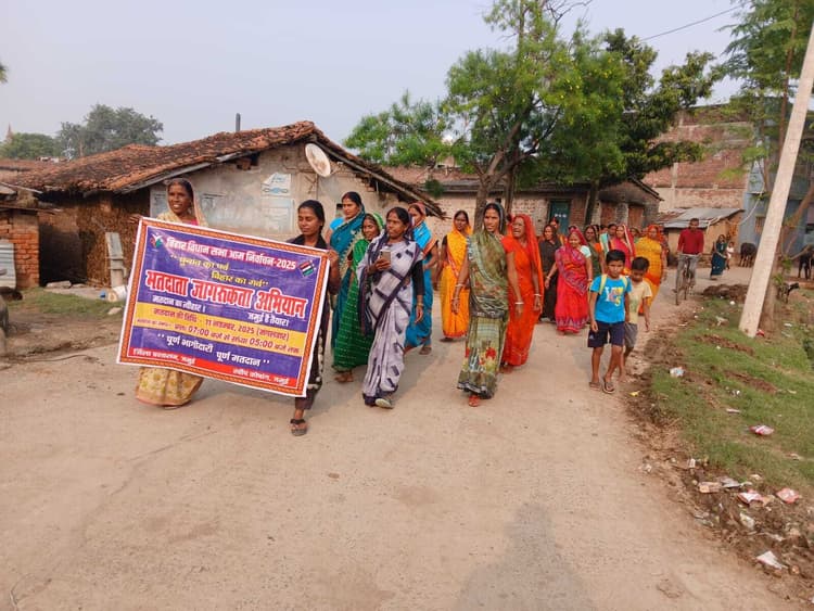 Bihar Assembly 2025 News : जमुई . आगामी 11 नवंबर 2025 को होने वाले बिहार विधानसभा चुनाव को लेकर जमुई जिले में मतदाता जागरूकता अभियान जोर पकड़ चुका है. जिले के दसों प्रखंडों में जीविका दीदियां पूरे उत्साह के साथ लोगों को मतदान के महत्व से अवगत करा रही हैं. कहीं रैली निकल रही है तो कहीं शपथ ग्रहण कार्यक्रम आयोजित किये जा रहे हैं. स्वीप गतिविधियों के तहत सोनो प्रखंड के बिसनपुर ग्राम में काजल ग्राम संगठन की सदस्य दीदियों ने मतदाता जागरूकता रैली निकाली. जमुई सदर प्रखंड के चौडीहा पंचायत में दीदियां घर-घर जाकर लोगों को मतदान की तिथि और महत्व समझा रही हैं. सोनपे गांव में सीता स्वयं सहायता समूह की महिलाओं ने मोहल्लों में घूमकर “पहले मतदान, फिर जलपान” का नारा बुलंद किया और लोगों को जागरूक किया. इस्लामनगर अलीगंज प्रखंड के कैथा और चकाई पंचायत के कियाजोड़ी में प्रगतिशील संकुल संघ की ओर से रैली और शपथ ग्रहण कार्यक्रम आयोजित किया गया. लक्ष्मीपुर के दिग्घी पंचायत में जब दीदियों ने महिलाओं से मतदान की बात की. झाझा प्रखंड के खुरंडा पंचायत में गणपति जीविका महिला ग्राम संगठन की दीदियों ने कैंडल जलाकर मतदान करने की शपथ ली. उल्लेखनीय है कि जीविका दीदियां जमुई, बरहट, गिद्धौर, लक्ष्मीपुर, झाझा, सोनो, चकाई, खैरा, सिकंदरा और इस्लामनगर अलीगंज सहित सभी प्रखंडों में मतदाता जागरूकता कार्यक्रम चला रही हैं. स्वीप अभियान के तहत जीविका समूहों की महिलाएं गांव-गांव जाकर नारों के माध्यम से संदेश दे रही हैं.