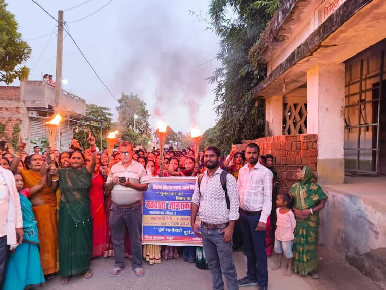 Bihar Assembly 2025 News: खैरा . आगामी 11 नवंबर को होने वाले विधानसभा चुनाव को लेकर शुक्रवार को रायपुरा पंचायत के हरियाडीह विद्यालय प्रांगण में जीविका दीदी के नेतृत्व में मतदाता जागरूकता अभियान चलाया गया. इस दौरान जीविका से जुड़ी सभी दीदियां और कार्यकर्ता एकजुट होकर मशाल जुलूस के रूप में गांव-गांव पहुंचे. हाथों में जलती मशाल लिए महिलाएं मतदान के महत्व को लेकर नारे लगा रही थीं. यह मशाल जुलूस हरियाडीह विद्यालय से शुरू होकर टोला चंद्रपुर होते हुए प्रखंड मुख्यालय तक पहुंचा. रास्ते में लोगों को जागरूक करते हुए जीविका दीदियों ने लोकतंत्र के इस महापर्व में सभी नागरिकों से निर्भीक होकर मतदान करने की अपील की. साथ ही कहा कि प्रत्येक मतदाता को अपने मताधिकार का प्रयोग कर देश और प्रदेश के उज्जवल भविष्य के निर्माण में योगदान देना चाहिए. इस मौके पर परियोजना प्रबंधक निरुपम घोष, शालिनी कुमारी, सौरव कुमार, अजीत कुमार, सुधीर कुमार, सीताराम कुमार, दिलीप कुमार, करुणा आनंद, राजेंद्र शर्मा, ममता कुमारी, सरिता कुमारी और सविता देवी समेत कई जीविका दीदियां शामिल थीं. सभी ने एकस्वर में कहा कि मतदाता जागरूकता ही सशक्त लोकतंत्र की पहचान है.