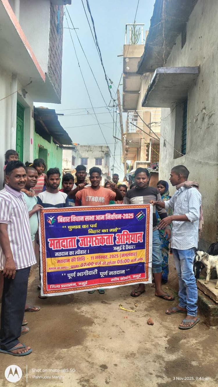 bihar election 2025 : जमुई. बिहार विधानसभा आम चुनाव 2025 को लेकर स्वीप कोषांग जमुई के निर्देश पर सोमवार को जमुई प्रखंड की विभिन्न पंचायतों और नगर परिषद क्षेत्र के महादलित टोलों में मतदाता जागरूकता कार्यक्रम का आयोजन किया गया. इस अभियान में विकास मित्रों और टोला सेवकों ने ग्रामीणों को मतदान के महत्व से अवगत कराया. लोगों को लोकतंत्र के इस महापर्व में निर्भीक होकर मतदान करने के लिए प्रेरित किया गया. यह कार्यक्रम सदर प्रखंड की पंचायत अड़सार के अहरा मुसहरी, पंचायत काकन के धोबी टोला, पंचायत चौड़ीहा के रजक टोला, पंचायत लखनपुर के मुसहरी टोला, पंचायत थेगुआ के सुग्गी रजक टोला, पंचायत दौलतपुर के मुसहरी टोला और पंचायत गरसंडा के रजक टोला में आयोजित किया गया. इसके अलावा नगर परिषद जमुई के वार्ड संख्या 1, 2, 3, 4, 8, 9, 11, 20, 21, 25, 26, 29 और 30 के संबंधित टोलों में भी जागरूकता अभियान चलाया गया. इस दौरान ग्रामीणों से मतदान केंद्र तक पहुंचने में आने वाली समस्याओं की जानकारी ली गयी और उनके समाधान के उपाय बताए गए. अभियान के दौरान महादलित टोला की महिलाओं, युवाओं और वरिष्ठ नागरिकों की उत्साहपूर्ण भागीदारी रही. लोगों ने मतदान को अपनी जिम्मेदारी बताते हुए संकल्प लिया कि वे 11 नवंबर 2025 को अवश्य मतदान करेंगे. विकास मित्रों ने बताया कि यह पहल जिले में शत-प्रतिशत मतदान सुनिश्चित करने की दिशा में एक सशक्त कदम है, इसमें समाज के हर वर्ग की भागीदारी जरूरी है.