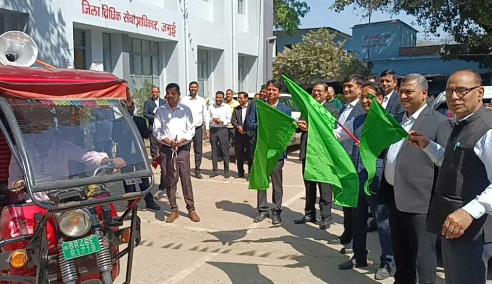 जमुई. जिला एवं सत्र न्यायाधीश सह जिला विधिक सेवा प्राधिकार के अध्यक्ष धर्मेंद्र कुमार सिंह ने राष्ट्रीय लोक अदालत को सफल बनाने के लिए न्यायालय परिसर से दक्षिण बिहार ग्रामीण बैंक , क्षेत्रीय कार्यालय के द्वारा प्रायोजित प्रचार वाहनों को हरी झंडी दिखाकर मंगलवार को न्यायालय परिसर से रवाना किया. मौके पर जिला विधिक सेवा प्राधिकार के सचिव राकेश रंजन, दक्षिण बिहार ग्रामीण बैंक के क्षेत्रीय प्रबंधक मो जफर आला, एलडीएम लक्ष्मी एक्का, व्यवहार न्यायालय के कई न्यायिक पदाधिकारी और नामित बैंक के कर्मी उपस्थित रहे.