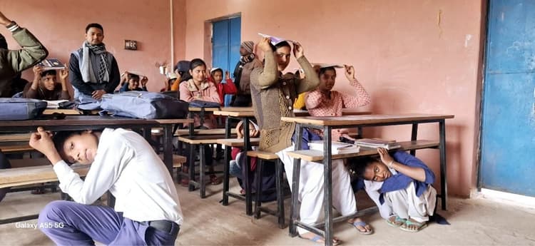 गिद्धौर. मुख्यमंत्री विद्यालय सुरक्षित शनिवार को लेकर गिद्धौर प्रखंड के सभी सरकारी विद्यालय में अध्यनरत बच्चों से मॉक ड्रील कराया गया. इसका आयोजन आपदा प्रबंधन के बतौर प्रशिक्षक दिलीप कुमार मंडल, राजीव वर्णवाल व सुशील रजक द्वारा दिया गया, उन्होंने आपदा से जुड़े विभिन्न बिंदुओं को उत्क्रमित मध्य विद्यालय महुली सहित संबंधित सभी विद्यालयों के छात्र छात्राओं के बीच रखा एवं घरेलू भाषा का प्रयोग कर उन्हें जानकारी दी. प्रशिक्षकों ने बाल प्रेरक के रूप में चयनित बच्चों को विद्यालय भूकंप सुरक्षा जागरूकता दिवस के अवसर पर मॉकड्रिल अभ्यास के माध्यम से प्रशिक्षण दिया, वहीं सभी बच्चों को भूकंप से बचाने के लिए शपथ भी दिलायी. इस मॉक ड्रिल के दौरान प्रशिक्षण प्राप्त शिक्षकों शिक्षिकाओं द्वारा भूकंप से संबंधित जोखिमों की पहचान करने, उनकी समझ विकसित करने एवं उनसे निबटने की क्षमता का विकास करने की जानकारी देकर उन्हें जागरूक किया. वहीं बच्चों को खेल खेल में भूकंप आने पे कैसे बचाव किया जाय इसके उपाय भी बताए. प्रशिक्षण के क्रम में छात्र छात्राओं को आपदा प्रबंधन,भूकंप के दौरान बचाव एवं प्राथमिक उपचार की जानकारी दी गयी. साथ ही मॉकड्रिल का भी पूर्वाभ्यास कराया गया. इस दौरान घायलों को ले जाने के लिए प्राकृतिक वस्तुओं से निर्मित स्ट्रेचर को बनाने, कृत्रिम सांस देने के साथ आपदा के दौरान घायलों को अस्पताल ले जाने के तरीकों के बारे में बताया गया. सुरक्षा जागरूकता मॉकड्रिल के सफल क्रियान्वयन पर खुशी जाहिर करते हुए दिलीप मंडल, सुशील रजक, राजीव वर्णवाल आदि ने कहा कि किसी भी आपातकालीन परिस्थिति में यह प्रक्षिक्षण त्वरित प्रतिवादन में सहायक सिद्ध होगा. इस मौके पर शिक्षक संजय मिश्रा, रंजीत राम, कैलाशपति यादव, युगल किशोर रजक, दिलीप कुमार, रवि कुमार रवि, अवधेश कुमार पप्पू, रेणु देवी, रंजीत शर्मा, चुनचुन कुमार, मनोज कुमार, बटेश्वर राम, सहित दर्जनों छात्र छात्राओं उपस्थित थे.