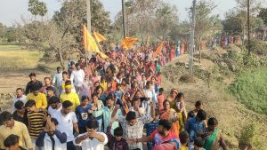 सिकंदरा. प्रखंड क्षेत्र के कुमार गांव स्थित प्रसिद्ध मां नेतुला भवानी मंदिर में नवदुर्गा, शिव परिवार व पंचमुखी हनुमान विग्रह की प्राण प्रतिष्ठा व मां नेतुला मंदिर के शिखर पर स्वर्ण कलश स्थापना को लेकर आयोजित श्रीश्री 1008 श्रीरूद्रचंडी महायज्ञ के आठवें दिन रविवार को भव्य शोभायात्रा निकाली गयी. शोभायात्रा के दौरान हजारों की संख्या में श्रद्धालु शामिल हुए. इस दौरान नवदुर्गा, शिव पार्वती परिवार एवं शिखर पर स्थापित होने वाली स्वर्ण कलश के साथ नगर भ्रमण किया गया. विदित हो कि मां नेतुला मंदिर में नवदुर्गा व नवनिर्मित भव्य शिव पार्वती मंदिर में शिवलिंग एवं अन्य प्रतिमा की प्राण प्रतिष्ठा को लेकर श्रीश्री 1008 श्री रूद्रचंडी महायज्ञ का 9 फरवरी से आयोजन किया जा रहा है. मंगलवार को हवन के साथ यज्ञ की पूर्णाहुति की जाएगी. इस दौरान सोमवार को नेतुला मंदिर के शिखर पर स्वर्ण कलश की स्थापना के साथ ही नवदुर्गा, शिव परिवार व पंचमुखी हनुमान जी के विग्रह का प्राण प्रतिष्ठा किया जाएगा. जिसको लेकर एक दिन पूर्व कुमार गांव में नगर भ्रमण के लिए शोभायात्रा निकाली गयी. ढोल नगाड़े के साथ शोभायात्रा में हजारों की संख्या में शामिल महिला-पुरुष सीता राम का जयकारा लगाते नगर भ्रमण किया. इस दौरान मंदिर समिति के कार्यकारी अध्यक्ष हरदेव सिंह, सचिव कृष्णनंदन सिंह, मुखिया शंभु सिंह, अनुज सिंह, मनोज सिंह, ललन सिंह, पंकज सिंह, रॉकी सिंह, गोपाल सिंह, मनीष कुमार, सीमा देवी उर्फ़ गुड़िया, उर्मिला देवी, मनी देवी, उषा देवी सहित हजारों की संख्या में श्रद्धालु शामिल हुए.