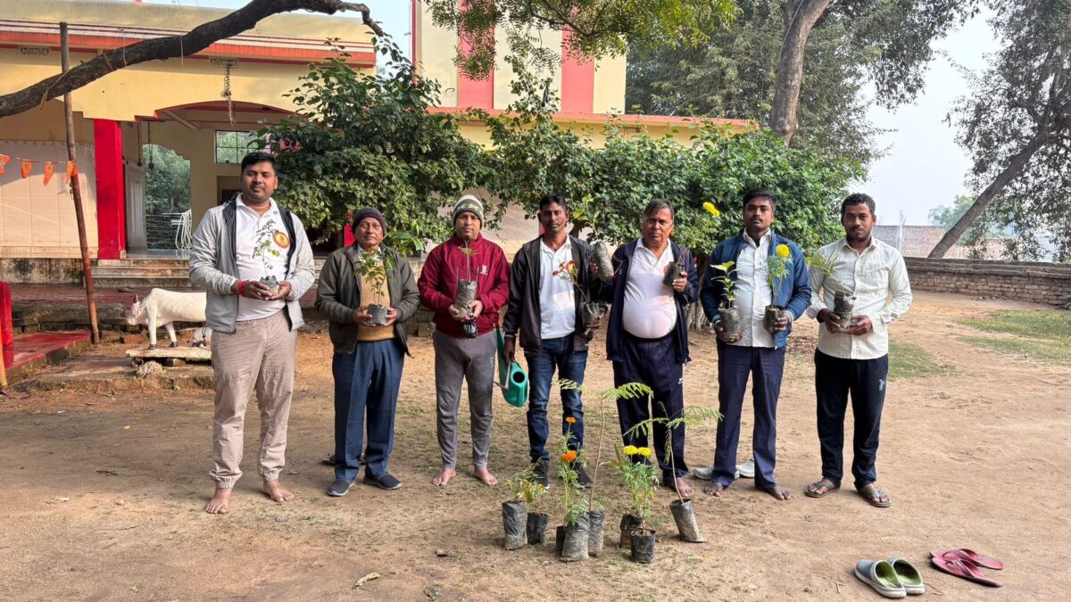 मंदिर परिसर में की गयी साफ-सफाई व लगाये पौधे