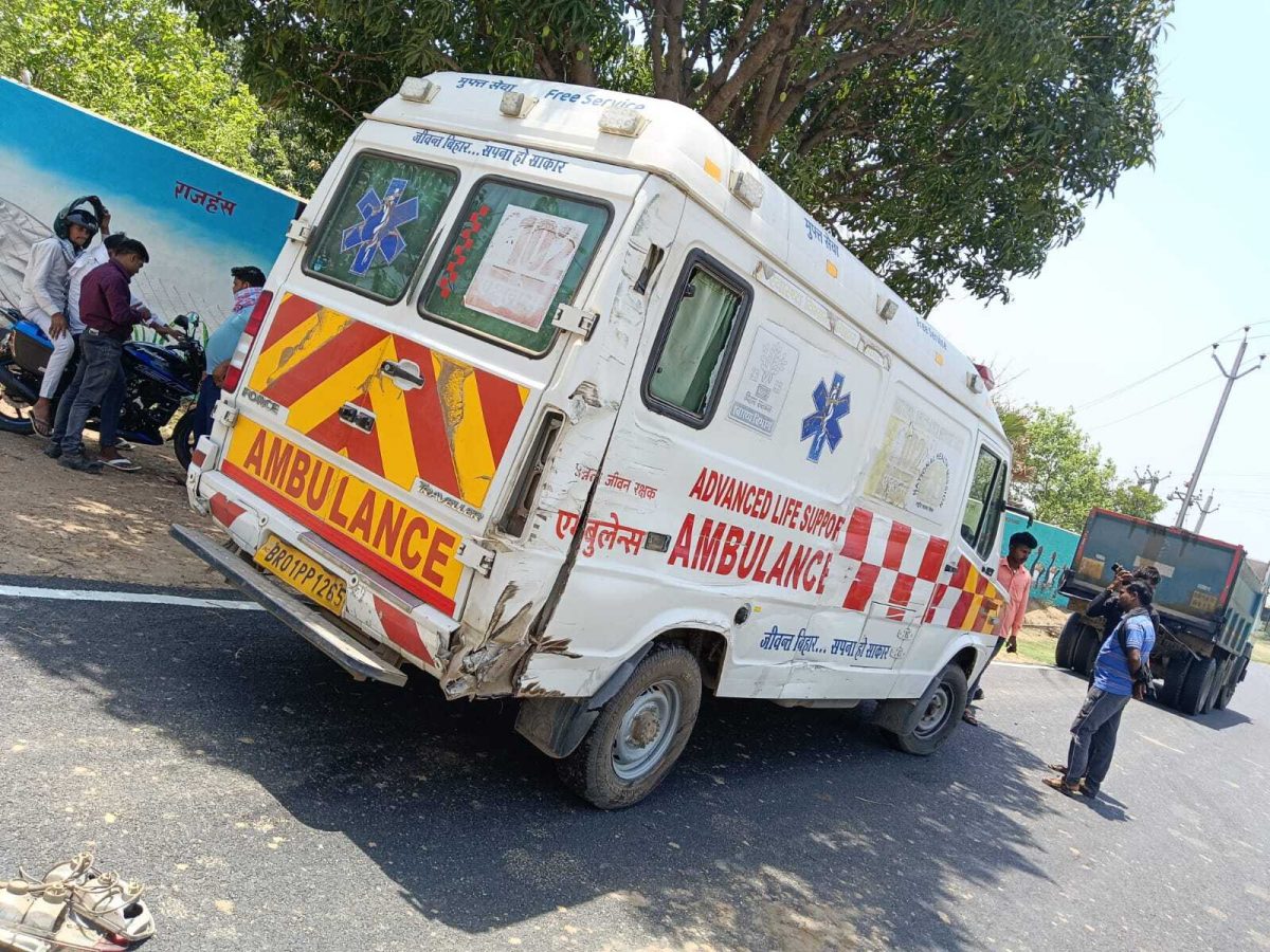 झाझा-बोड़बा मुख्य मार्ग पर नागी पक्षी आश्रयणी के समीप गुरुवार को सरकारी एम्बुलेंस व हाइवा के बीच हुए टक्कर में एंबुलेंस चालक बाल-बाल बच गया.