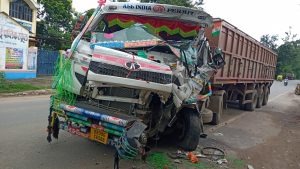 गिद्धौर-जमुई मार्ग पर दो ट्रकों की टक्कर, दोनों वाहन क्षतिग्रस्त