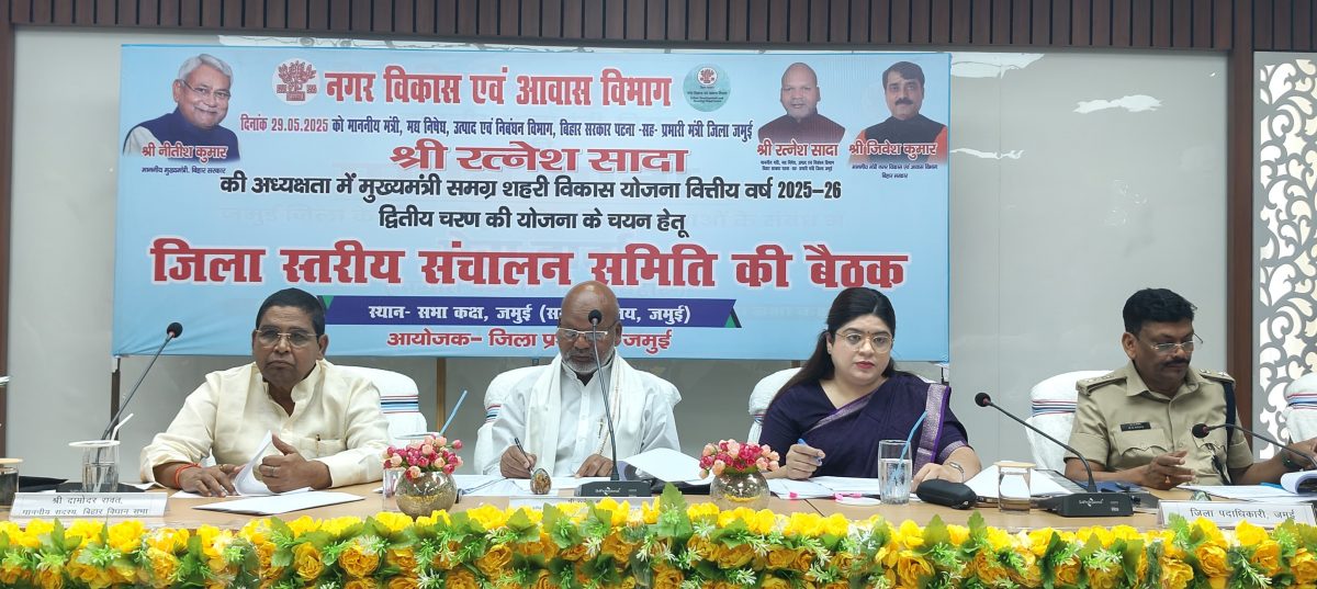 जमुई. मुख्यमंत्री समग्र शहरी विकास योजना के अंतर्गत जिला संचालन समिति की अहम बैठक गुरुवार को समाहरणालय के सभा कक्ष में आयोजित की गयी. बैठक की अध्यक्षता बिहार सरकार के मद्य निषेध, उत्पाद एवं निबंधन मंत्री सह जमुई जिला प्रभारी मंत्री रत्नेश सादा ने की. बैठक में वित्तीय वर्ष 2024-25 के लिए चयनित योजनाओं की विस्तृत समीक्षा की गई. साथ ही वर्ष 2025-26 में शहरी विकास के द्वितीय चरण हेतु प्रस्तावित 49 योजनाओं की प्राथमिकता सूची पर गंभीरतापूर्वक चर्चा हुई. इन योजनाओं में नगर परिषद जमुई की 20, नगर परिषद झाझा की 06 तथा नगर पंचायत सिकंदरा की 23 योजनाएं शामिल हैं. प्रस्तावित योजनाओं में सड़क निर्माण, नाला निर्माण, पार्किंग स्थल, स्ट्रीट लाइट, हाई मास्ट लाइट, घाट निर्माण जैसे कार्य शामिल हैं. प्रभारी मंत्री श्री सादा ने बैठक को संबोधित करते हुए कहा कि मुख्यमंत्री समग्र शहरी विकास योजना के तहत नगर क्षेत्रों में आधारभूत संरचनाओं का सुदृढ़ीकरण एवं सौंदर्यीकरण किया जाएगा. उन्होंने अधिकारियों को निर्देश दिया कि प्राप्त प्राथमिकता सूची के आधार पर योजनाओं का प्राक्कलन शीघ्र तैयार कर प्रशासनिक स्वीकृति हेतु भेजा जाए. स्वीकृति के उपरांत निविदा प्रक्रिया बुडको के माध्यम से की जाएगी. बैठक में उपस्थित जिलाधिकारी ने योजना को नगर क्षेत्र के विकास के लिए अत्यंत प्रभावी बताया. उन्होंने सभी विभागीय अधिकारियों से समन्वय स्थापित कर योजनाओं के शीघ्र क्रियान्वयन की अपील की. बैठक में झाझा विधानसभा के विधायक दामोदर रावत, उप विकास आयुक्त, अनुमंडल पदाधिकारी, नजारत उप समाहर्ता, नगर परिषद जमुई की कार्यपालक पदाधिकारी डॉ. प्रियंका गुप्ता, नगर परिषद झाझा के कार्यपालक पदाधिकारी डॉ जनार्दन प्रसाद वर्मा, नगर पंचायत सिकंदरा की कार्यपालक पदाधिकारी अनिशा कुमारी, बुडको के परियोजना निदेशक सहित अन्य समिति सदस्य उपस्थित थे.