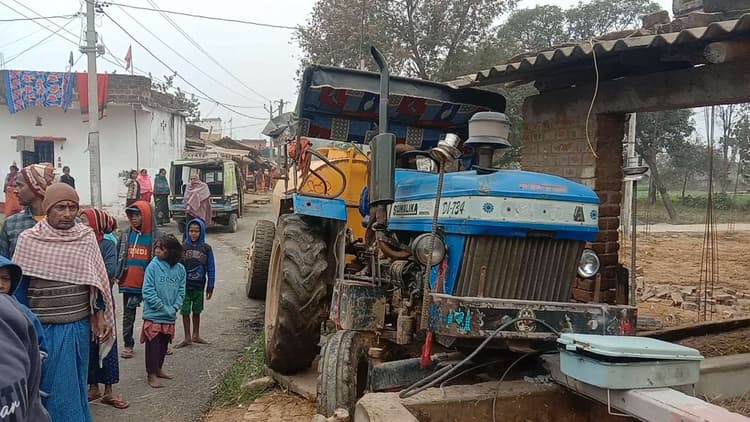 बरहट. थाना क्षेत्र के भालूका गांव में बीते शनिवार को शराब के नशे में धुत एक ट्रैक्टर चालक ने सड़क किनारे खड़े बिजली पोल और मवेशियों के चारा खाने के लिए बने नाद में जोरदार टक्कर मार दिया. टक्कर इतनी तेज थी कि बिजली पोल टूट गया और तेज आवाज के साथ ट्रैक्टर नाद में फंसकर रुक गया. जिससे बगल के घर में घुसने से बच गया. घटना के बाद लोग घरों से बाहर निकले और नशे में धुत चालक को पकड़कर बंधक बना लिया व 112 नंबर की पुलिस पर सूचना दी गयी. सूचना मिलते ही पुलिस मौके पर पहुंची और चालक को हिरासत में लेकर थाना ले गयी. चालक की पहचान पांडेठिका निवासी भुना मांझी के रूप में हुई है. बरहट थानाध्यक्ष कुमार संजीव ने बताया कि सूचना मिलते ही पुलिस टीम मौके पर पहुंची और ट्रैक्टर चालक को हिरासत में लेकर थाना लाया गया है. आवेदन मिलने पर मामले में उचित कानूनी कार्रवाई की जायेगी.