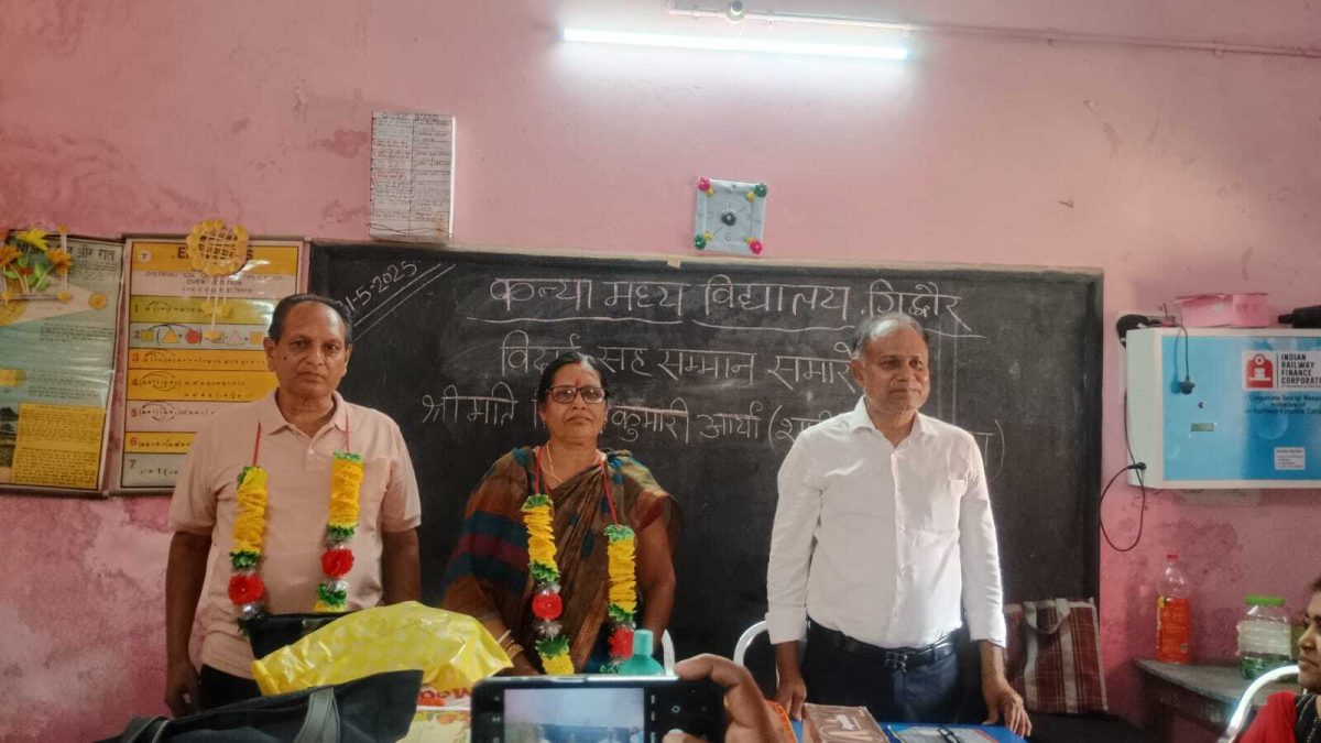 गिद्धौर. प्रखंड के कन्या मध्य विद्यालय गिद्धौर में विद्यालय प्रधानाध्यापक निरंजन पासवान की देखरेख में विदाई सह सम्मान समारोह आयोजित कर विद्यालय की शारीरिक शिक्षिका गिरिजा कुमारी आर्या को सेवानिवृत्ति उपरांत उन्हें भावभीनी विदाई दी दी गयी. इस अवसर पर विदाई समारोह में प्रधानाध्यापक निरंजन पासवान ने कहा कि शिक्षक कभी सेवानिवृत्त नहीं होते हैं. विद्यालय शिक्षिका सुजाता कुमारी ने कहा कि हम सभी शिक्षिका इनके दिखाये गये मार्गों का अनुसरण कर शिक्षा के क्षेत्र में अपनी अभूतपूर्व भूमिका निभाएंगें. इस मौके पर समारोह को विद्यालय शिक्षिका सुजाता कुमारी, रीता कुमारी, किरण कुमारी, अंशु माला, प्रियंका कुमारी ने भी संबोधित कर विद्यालय से सेवानिवृत्त हो रहे शिक्षिका गिरिजा कुमारी के प्रति अपना हृदय उदगार व्यक्त किया.