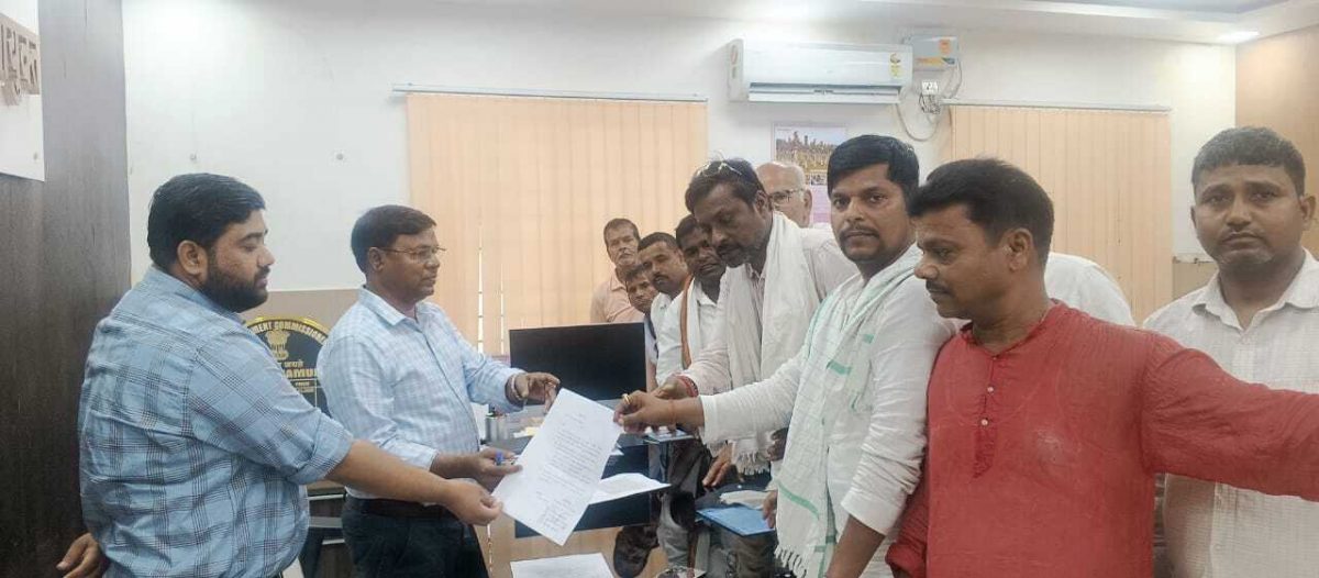 एनएच 333 ए के चौड़ीकरण के दौरान किसानों की जमीन अधिग्रहण के पश्चात समुचित मुआवजा की मांग को लेकर किसान संघर्ष समिति के सदस्यों ने सोमवार को स्थानीय कचहरी चौक पर धरना दिया.