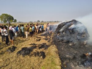 धान के पुंज में लगी आग, हजारों रुपये का नुकसान