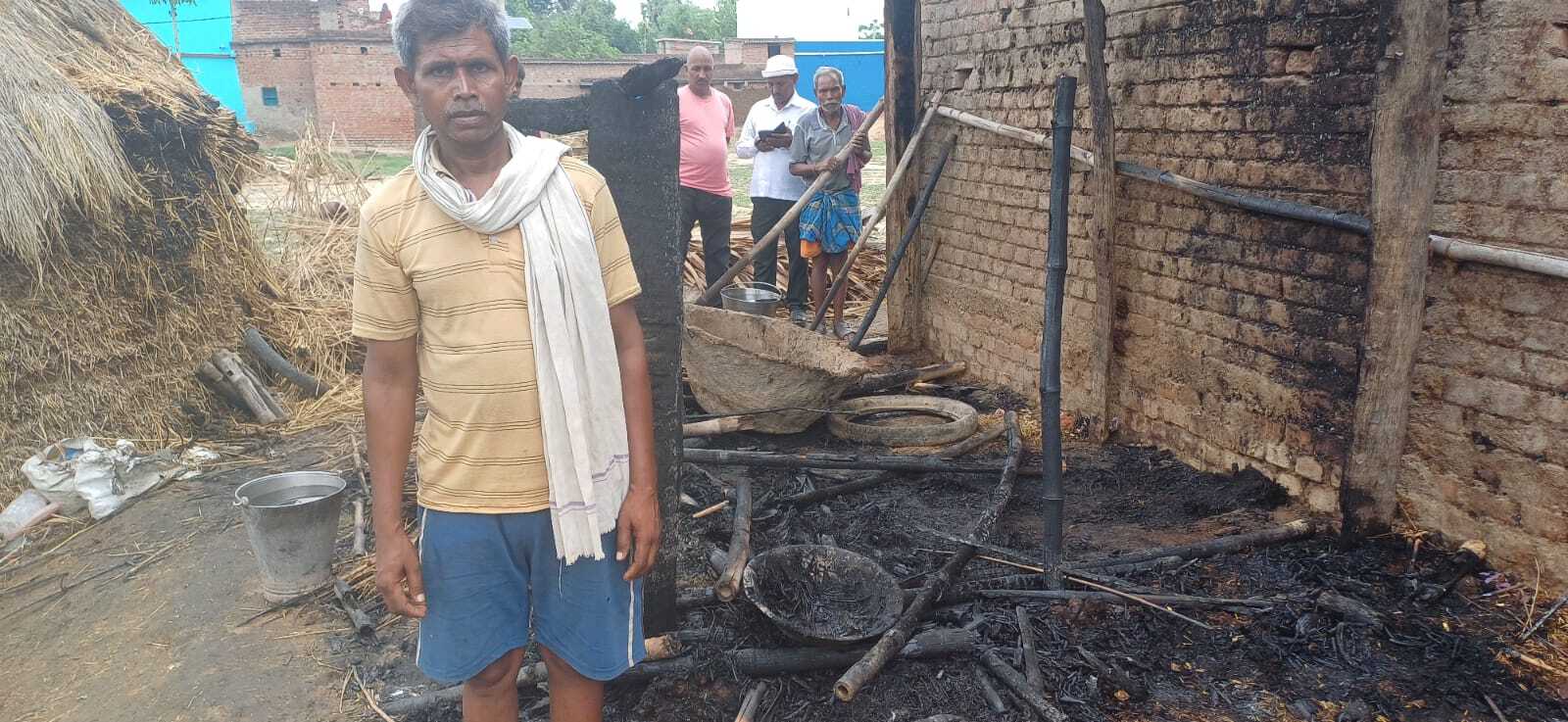 अलीगंज. सोमवार देर रात चंद्रदीप थाना क्षेत्र के महतपुर गांव निवासी वार्ड सदस्य हीरा रविदास के घर के पीछे रहे गौशाला में आग लग जाने से एक मवेशी की मौत हो गयी. जबकि पूरा गोशाला जलकर राख हो गया. गोशाला मालिक हीरा रविदास ने बताया कि आग कैसे लगी इसका पता नहीं चल सका है. उन्होंने बताया कि रात करीब दो बजे नींद खुली तो देखे कि गोहाल से धुआं निकल रहा है. आनन-फानन में वहां पहुंचे तो देखा कि गोहाल में आग लगी हुई है तभी गोहाल में बंधे तीनों मवेशी को बाहर किया लेकिन तबतक एक मवेशी आग के चपेट में आकर झुलस गया था. जिसे किसी तरह बाहर किया और पशु अस्पताल को बुलाकर इलाज कराने का प्रयास किया लेकिन इलाज के पूर्व ही उसकी मौत हो गई थी. उन्होंने बताया कि अगलगी में एक मवेशी, आठ हजार पुआल, खटिया, ,छ्प्पर सहित करीब पचास-साठ हजार रुपये की संपत्ति जल कर राख हो गया. उन्होंने घटना की जानकारी सीओ अलीगंज व चंद्रदीप थाना को दे कर मुआवजा दिलाने की मांग की. घटना की सूचना पाकर पहुंचे मुखिया देवनंदन यादव ने बताया पीड़ित को हर सम्भव सरकारी सहायता दिलाने का प्रयास किया जायेगा.