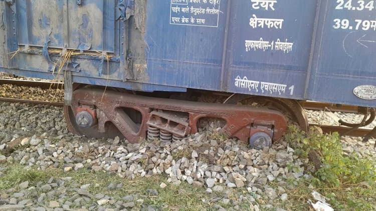 झाझा. दानापुर रेल मंडल स्थित नरगंजों हाल्ट के समीप दुधिजोर पुल के पूर्व अप लाइन में गुरुवार दोपहर 3:30 बजे एक मालगाड़ी बेपटरी हो जाने से रेल परिचालन बाधित हो गया. घटना में रेल हादसा होते-होते बच गया. जानकारी देते हुए यातायात निरीक्षक रवि गुप्ता ने बताया कि यार्ड से अप लाइन पर मालगाड़ी आ रही थी तभी मालगाड़ी का दो वैगन, एक ट्रोली का चक्का अचानक पटरी से उतर गया. जिससे मालगाड़ी अनियंत्रित हो गयी और दुर्घटना होते-होते बचा. घटना के बाद मालगाड़ी के चालक द्वारा स्टेशन प्रबंधक रविकांत माथुरी को इसकी सूचना दी गयी.