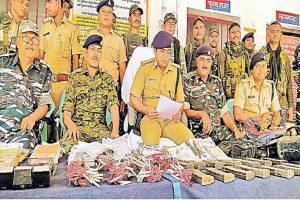 जमुई के बरहट प्रखंड क्षेत्र के जंगली इलाकों में बीते दिनों बरहट पुलिस, सीआरपीएफ 215 बटालियन, 207 कोबरा बटालियन ने संयुक्त बी लेबल ऑप्स सर्च अभियान चलाया गया था. इस दौरान इलेक्ट्रॉनिक डेटोनेटर 179 पीस, इनसास एलएमजी, मैगजीन 10 इंसास राइफल, मैगजीन 4, जेलेटिन इलेक्ट्रॉनिक डेटोनेटर के साथ तीन ड्रैगन लाइट, एक नक्सल पोशाक, दैनिक उपयोग की सामग्री, नक्सल साहित्य, नक्सल लेटर, एक हजार लीटर पानी टंकी, नक्सलियों के पिट्ठू बैग, तार व नक्सलियों से जुड़े अन्य कई सामान बरामद किया गया था.