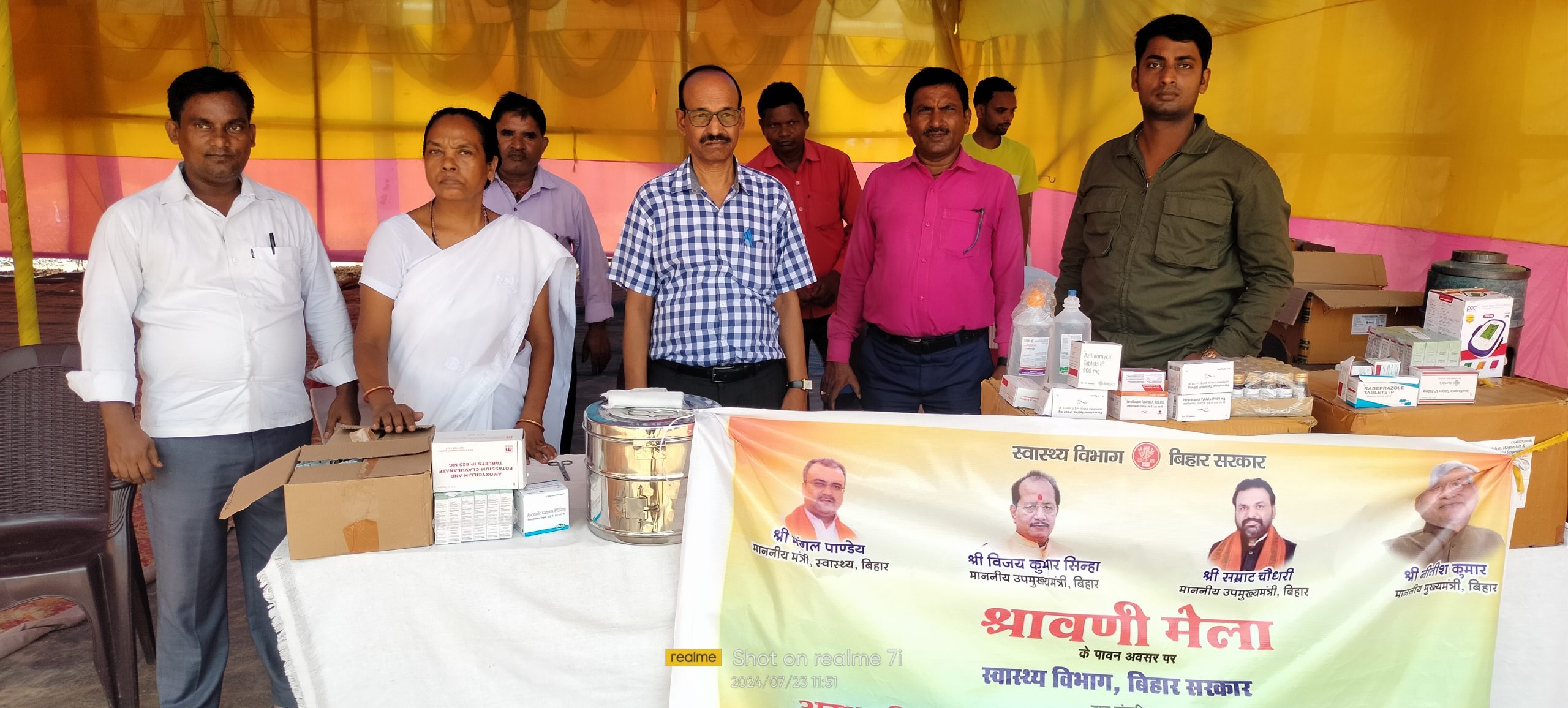 लक्ष्मीपुर. सावन मास में सुल्तानगंज से जल भरकर बाबा नगरी देवघर में बाबा भोलेनाथ पर जल चढ़ाने के लिए लगने वाले श्रावणी मेला को लेकर प्रखंड होकर गुजरने वाले कांवरियों को चिकित्सा सेवा उपलब्ध कराने के लिए जमुई-सुल्तानगंज मुख्य मार्ग एन एच 333 पर प्रखंड मुख्यालय से सटे लक्ष्मीपुर बाजार स्थित राजकीय कन्या प्लस टू उच्च माध्यमिक विद्यालय लक्ष्मीपुर के प्रांगण में स्वास्थ्य विभाग की ओर से चिकित्सा सेवा शिविर लगाया गया है. शिविर में कांवरियों को 24 घंटे चिकित्सा सेवा उपलब्ध होगी.रेफरल अस्पताल लक्ष्मीपुर के प्रभारी चिकित्सा पदाधिकारी डीके धुसिया ने बताया कि शिविर मै एक चिकित्सक के साथ एक नर्स तथा दो स्वास्थ कर्मी को लगाया है. शिविर में प्राथमिक उपचार के लिए बेड के साथ सभी दवाएं उपलब्ध कराई गयी है, ताकि कांवरियो को बेहतर स्वास्थ्य सुविधा का लाभ मिल सके. इसके साथ पीड़ित कांवरियों के साथ रहे लोगों को आराम करने की भी व्यवस्था भी शिविर में की गयी है.