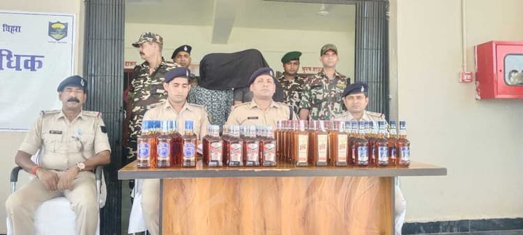 चकाई. चिहरा पुलिस ने दुम्मा मोड़ के समीप से मंगलवार को एक डीसीएम ट्रक से भारी मात्रा में अंग्रेजी शराब बरामद की है और दो शराब तस्कर को भी गिरफ्तार किया है. 120 कार्टन शराब ट्रक के अंदर तहखाने से बरामद की गयी है. जानकारी देते हुए एसडीपीओ राजेश कुमार ने बताया कि एसपी डा शौर्य सुमन को सूचना मिली कि एक उजले रंग की डीसीएम ट्रक के तहखाने में भारी मात्रा में अंग्रेजी शराब छिपाकर बोकारो से चकाई के रास्ते लखीसराय जिला ले जायी जा रही है. इसके बाद छापेमारी दल का गठन किया गया. छापेमारी दल ने दुम्मा मोड़ के पास वाहन जांच अभियान चलाया गया. इस क्रम में पुलिस ने झारखंड की ओर से आ रहे एक ट्रक को रुकने का इशारा किया तो वाहन चालक ट्रक लेकर तेजी से भागने का प्रयास करने लगा. तभी पुलिस पीछा कर वाहन को अपने कब्जा में लिया और तलाशी ली गयी तो उसमें रखी 120 कार्टन से 1680 बोतलों में 1080 लीटर शराब बरामद की गयी. इस मामले में पुलिस ने दो तस्करों को भी गिरफ्तार किया है, जिससे पूछताछ की जा रही है. गिरफ्तार शराब तस्कर बोकारो जिले के चास थाना क्षेत्र के प्रभात चास निवासी चंदन कुमार व तेलीडीह चास निवासी लक्ष्मण कुमार है. उन्होंने बरामद शराब की कीमत 15 लाख रुपये बताये जा रहे है. छापेमारी अभियान में चिहरा थानाध्यक्ष अरबिंद कुमार, बिचकोड़वा थानाध्यक्ष राहुल कुमार, अवर निरीक्षक रामकेश्वर पासवान, शिवनंदन कुमार, डीएपी व सैप जवान शामिल थे.