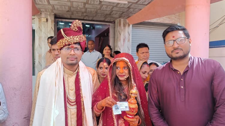 Lok Sabha Poll: जमुई. मजबूत लोकतंत्र की एक दमदार और खूबसूरत तस्वीर सामने आई है. शेखपुरा में ससुराल की चौखट पर कदम रखने से पूर्व नवदंपती ने पहला कदम मतदान केंद्र पर रखा. लोकतंत्र के महापर्व में अपनी जिम्मेवारी का निवर्हन करते हुए जमुई लोकसभा के शेखपुरा विधान सभा शेखपुरा के मतदान केंद्र संख्या 66 पर एक नवविवाहिता सुष्मिता कुमारी ने शादी के मंडप से निकलकर सीधे अपने मतदान केंद्र पहुंचकर मतदान किया. सुष्मिता ने कहा कि लोकतंत्र इस महापर्व में हिस्सा लेना हमसब का कर्तव्य है. इसलिए शादी के बाद पहला काम बूथ पर मतदान करने के रूप में किया.
