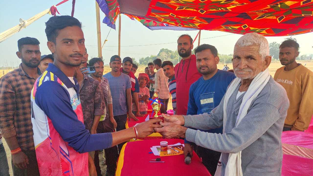 गिद्धौर. प्रखंड के गंगरा खेल मैदान में जय बाबा कोकिलचंद क्रिकेट क्लब की ओर से जिलास्तरीय क्रिकेट टूर्नामेंट हुआ. टूर्नामेंट का उदघाटन गंगरा पैक्स अध्यक्ष वशिष्ठ कुमार सिंह पंचायत समिति संतोष रजक एवं बिट्टू सिंह ने किया. पांडेय क्रिकेट क्लब कटौना बरहट बनाम मां काली किक्रेट क्लब तेलियाडीह झाझा के बीच क्रिकेट मैच खेला गया. इसमें पांडेय क्रिकेट क्लब कटौना की टीम ने टॉस जीतकर पहले बल्लेबाजी करते हुए 14 ओवर में 05 विकेट के नुकसान पर 132 रन बनाये.वहीं लक्ष्य का पीछा करने उतरी विपक्षी टीम मां काली क्रिकेट क्लब तेलियाडीह झाझा ने 13.2 ओवर में 02 विकेट रहते इस क्रिकेट मुकाबला को अपने नाम कर लिया. खेल समाप्ति उपरांत मैन ऑफ द मैच तेलियाडीह के नितेश को दिया गया. खेल में अंपायर की भूमिका गौतम व कुंदन ने निभायी. वहीं मैच में उद्घोषक की भूमिका राघवेन्द्र व प्रवीण ने एवं स्कोरर की भूमिका रोहित एवं अजय ने निभायी. इस टूर्नामेंट टूर्नामेंट के सफल आयोजन में सोनू कुमार, निलेश कुमार, गुंजन कुमार, विकास, संदीप कुमार, राहुल कुमार द्वारा योगदान दिया जा रहा है. इस अवसर पर खेल को देखने सैकड़ों की संख्या में खेल प्रेमी युवा खिलाड़ी व ग्रामीण खेल मैदान में मौजूद थे.