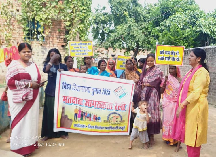 जमुई . विधानसभा क्षेत्र 241 जमुई के अंतर्गत स्वीप कोषांग द्वारा गुरुवार को मतदाता जागरूकता अभियान चलाया गया. बाल विकास परियोजना कार्यालय की महिला पर्यवेक्षिका वंदना कुमारी, अनिता कुमारी, रश्मि कुमारी, सुजाता कुमारी के नेतृत्व में यह कार्यक्रम अगहरा मांझी टोला (बूथ संख्या-76), नबीनगर (बूथ संख्या-5), खैरमा पश्चिम (बूथ संख्या-113), पासवान टोला संगथू (बूथ संख्या-38), और खैरमा उत्तरी (बूथ संख्या-83) में चलाया गया. कार्यक्रम के दौरान महिलाओं व नव मतदाताओं को जागरूक करते हुए उन्हें मतदान की शपथ दिलायी गयी. साथ ही, जागरूकता रैली निकाल कर आम नागरिकों को यह संदेश दिया गया कि लोकतंत्र की मजबूती के लिए सभी को मतदान अवश्य करना चाहिए. इस दौरान लोगों ने नारे लगाये कि भेदभाव को छोड़ चले, सबसे रिश्ता जोड़ चले, वक्त जागरण का आया, चलो करें हम सब मतदान, अपनी ताकत को पहचान. मौके पर उपस्थित अधिकारियों ने लोगों को बताया कि एक स्वतंत्र और संप्रभु देश की सबसे बड़ी ताकत उसका लोकतंत्र होती है, जिसकी नींव आम नागरिकों के डाले गये वोट पर टिकी होती है. इसीलिए आगामी 11 नवंबर 2025 को होने वाले विधानसभा चुनाव में पहले मतदान, फिर जलपान के संकल्प को दोहराया गया. इस अवसर पर मौजूद रहीं. साथ ही संबंधित बूथ की सेविकाएं, सहायिकाएं और बड़ी संख्या में आम ग्रामीणों ने भी जागरूकता रैली में भाग लिया.