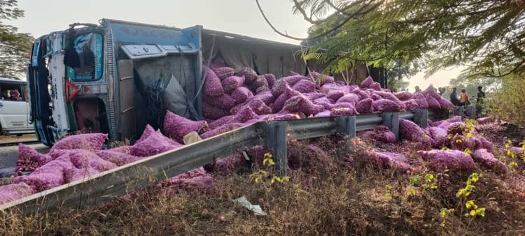 चंद्रमंडीह. चकाई-देवघर मुख्य मार्ग पर चन्द्रमंडीह थाना क्षेत्र के अंबा टांड मोड़ के समीप शुक्रवार की संध्या प्याज लदा एक ट्रक असंतुलित होकर सड़क किनारे पलट गया. दुर्घटना में ट्रक का उप चालक दुःखन यादव घायल हो गया, जबकि ट्रक पर लदा प्याज़ सड़क किनारे बिखर गयी. मिली जानकारी के अनुसार, ट्रक मध्य प्रदेश के रतलाम से प्याज लेकर बंगाल के मेहंदीपुर जा रहा था. इसी क्रम मे चन्द्रमंडीह थाना क्षेत्र के अम्बाटांड मोड़ के समीप पहुंचते ही एक बोलेरो द्वारा ट्रक को चकमा देने के कारण ट्रक असंतुलित हो पलट गया. घटना के बाद घायल उप चालक को चकाई रेफरल अस्पताल मे भर्ती कराया गया. जहां चिकित्सक द्वारा ईलाज किया जा रहा था. वहीं चालक की पहचान नवादा जिला अंतर्गत प्रणडाबर थाना क्षेत्र के रमरायचक गांव निवासी अनिल प्रसाद यादव के रूप में हुई है. इधर घटना की जानकारी मिलने के बाद चन्द्रमंडीह पुलिस मौके पर पहुंच कर मामले की छानबीन कर रही हैं.