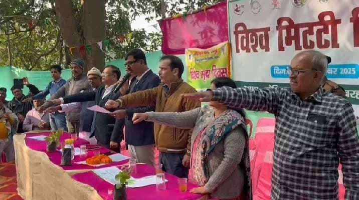 बरहट . प्रखंड क्षेत्र के केडिया गांव में अंतरराष्ट्रीय मिट्टी दिवस के अवसर पर मिट्टी संरक्षण और जैविक खेती को समर्पित एक कार्यक्रम का आयोजन किया गया. जीवित माटी किसान समिति द्वारा आयोजित इस प्रदर्शनी में मिट्टी के स्वास्थ्य, प्राकृतिक कृषि पद्धतियों और पर्यावरण संरक्षण पर विस्तार से चर्चा की गई. गांव के किसानों, महिलाओं, युवाओं ने कार्यक्रम में भाग लिया. कार्यक्रम का उद्घाटन जिलाधिकारी श्री नवीन ने दीप प्रज्वलित कर किया. उन्होंने प्रदर्शनी का अवलोकन करते हुए कहा कि केडिया गांव की मिट्टी आज भी सुरक्षित और सक्षम है. जिसके कारण यहां कुएं के पानी से खेती की परंपरा बनी हुई है. यह जिले के लिए गर्व की बात है.उन्होंने आगे कहा कि इस परंपरा को और मजबूत बनाने के लिए प्रशासन किसानों के साथ कंधे से कंधा मिलाकर चलेगा. जैविक खेती में आ रही तकनीकी और व्यवस्थागत चुनौतियों को दूर करने की दिशा में ठोस कदम उठाए जाएंगे. जिससे किसानों को बेहतर उत्पादन और बाजार उपलब्ध हो सके. किसानों ने अपने खेतों में पानी की कमी और सिंचाई संबंधी समस्याओं को भी जिलाधिकारी के सामने रखा. इस पर उन्होंने जल्द समाधान का भरोसा दिया. उपस्थित ग्रामीणों और स्कूली बच्चों ने भी स्थानीय समस्याओं को साझा किया जिनके निराकरण का आश्वासन जिलाधिकारी ने मौके पर ही दिया. कार्यक्रम के अंत में जिलाधिकारी ने सभी उपस्थितों को मृदा संरक्षण की शपथ दिलाई और कहा कि मिट्टी के संरक्षण से ही आने वाली पीढ़ियों का भविष्य सुरक्षित रह सकता है.मौके पर जिला कृषि पदाधिकारी ब्रजेश कुमार, पंचायत के मुखिया अमित कुमार निराला, कृषि विशेषज्ञ, स्वास्थ्य विशेषज्ञ और बड़ी संख्या में स्थानीय ग्रामीण शामिल थे.