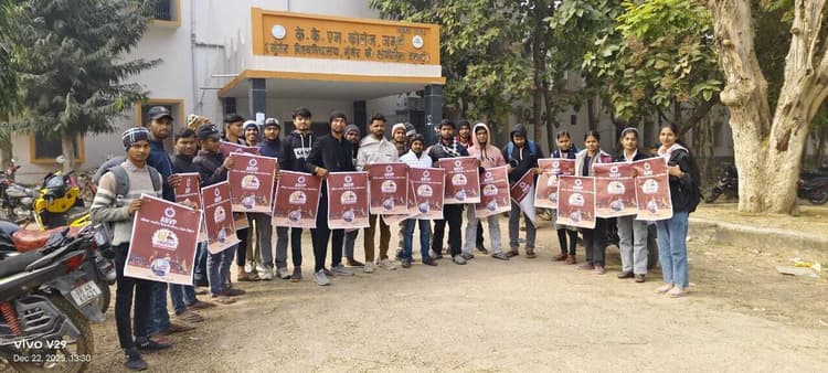 जमुई . अखिल भारतीय विद्यार्थी परिषद जिला इकाई की ओर से दक्षिण बिहार प्रांत के 67वें प्रांत अधिवेशन का पोस्टर विमोचन नगर इकाई जमुई द्वारा केकेएम कॉलेज परिसर में किया गया. हर वर्ष की तरह इस वर्ष भी अभाविप का प्रांत अधिवेशन 28, 29, 30 एवं 31 दिसंबर को गया जी में आयोजित किया जायेगा, जिसकी तैयारियां शुरू हो चुकी हैं. इसी क्रम में दक्षिण बिहार प्रांत के अंतर्गत सभी इकाइयों में पोस्टर विमोचन कार्यक्रम चलाया जा रहा है. इसी कड़ी में जमुई इकाई के कार्यकर्ताओं ने कॉलेज परिसर में अधिवेशन के पोस्टर का विमोचन कर छात्रों को कार्यक्रम की जानकारी दी और अधिक से अधिक संख्या में भागीदारी का आह्वान किया. इस अवसर पर पूर्व नगर मंत्री अमन सिंह चंदेल, नगर सह मंत्री राजा सिंह एवं अभिमन्यु कुमार, छात्रसंघ अध्यक्ष शिपू कुमार, अनुज आर्यन, अभिनय कुमार, कोमल कुमारी, पूजा कुमारी, सत्यम कुमार सहित अन्य कार्यकर्ता उपस्थित रहे. कार्यक्रम के दौरान कार्यकर्ताओं ने अधिवेशन को संगठनात्मक दृष्टि से महत्वपूर्ण बताते हुए इसकी सफलता के लिए सक्रिय सहभागिता का संकल्प लिया.