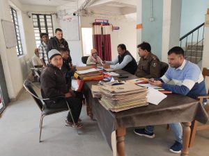 चंद्रमंडीह. चकाई थाना में शनिवार को अंचलाधिकारी राजकिशोर साह व थानाध्यक्ष राकेश कुमार की उपस्थिति में भूमि विवाद से जुड़े मामले के निष्पादन को लेकर जनता दरबार लगाया गया. अंचलाधिकारी ने बताया कि जनता दरबार में कुल दो नसे मामले आये, जिसकी जांच पड़ताल की जा रही है. वहीं पूर्व के सभी मामलों का निष्पादन कर लिया गया है. उन्होंने आगे बताया कि भूमि विवाद से जुड़े मामले के निष्पादन को लेकर सप्ताह के हर शनिवार को विभिन्न थानों में जनता दरबार का आयोजन किया जाता है.मौके पर विभिन्न पंचायत के राजस्व कर्मचारी एवं फरियादी उपस्थित थे.
