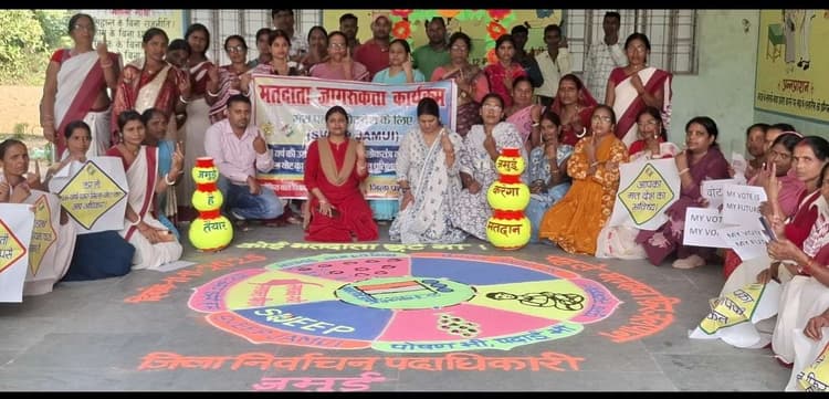 सोनो . विधानसभा क्षेत्र 243 अंतर्गत सोनो प्रखंड कार्यालय परिसर स्थित बाल विकास परियोजना कार्यालय परिसर में शुक्रवार को स्वीप कार्यक्रम के तहत मतदाता जागरूकता व संकल्प समारोह का आयोजन किया गया. आयोजन का मुख्य उद्देश्य शत प्रतिशत मतदान करना और हर एक मतदाता को अपने मत का प्रयोग करने हेतु प्रेरित करना था. कार्यक्रम अंतर्गत आकर्षक रंगोली ,सेल्फी प्वाइंट, मतदाता जागरूकता शपथ, रैली से मतदाताओं को लोकतंत्र के महापर्व में शामिल होने हेतु अपील किया गया. सीडीपीओ बिनु कुमारी के नेतृत्व में आइसीडीएस कार्यालय से एक जागरूकता रैली निकाली गई जो प्रखंड कार्यालय परिसर होते हुए ब्लॉक रोड के विभिन्न क्षेत्र तक गई. रैली के दौरान छोड़ो अपने सारे काम, पहले करो अपना मतदान जैसे कई तरह के नारे लगाए जा रहे थे. इससे पूर्व मौके पर उपस्थित सभी प्रतिभागियों को निर्वाचन आयोग द्वारा निर्धारित मतदाता शपथ ग्रहण करवाया गया. कार्यक्रम में बाल विकास परियोजना पदाधिकारी बिनु कुमारी, सभी महिला पर्यवेक्षक, प्रखंड समन्वयक, सभी आंगनबाड़ी सेविका व सहायिका और स्थानीय मतदाता उपस्थित थे.