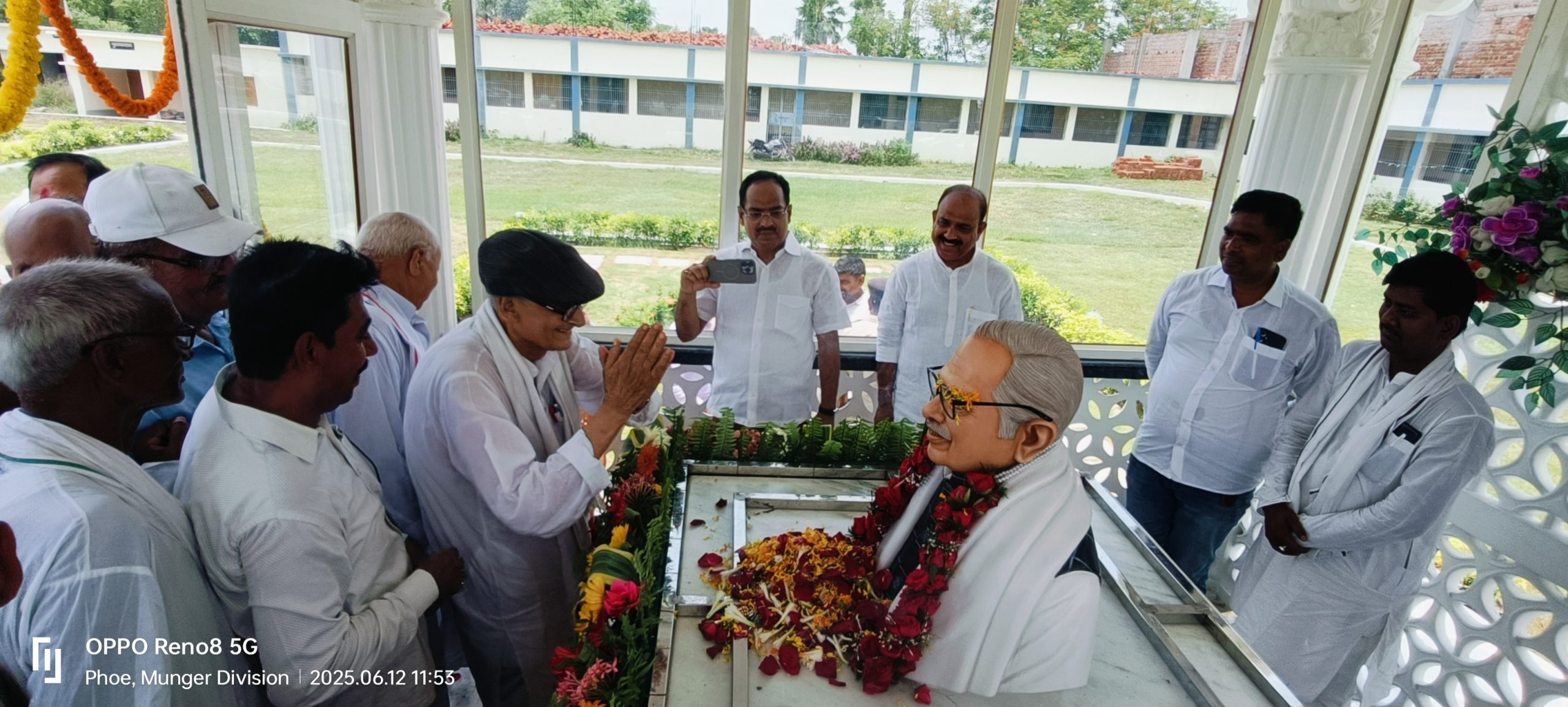 सिकंदरा. प्रखंड क्षेत्र के पिरहिंडा गांव स्थित धनराज सिंह महाविद्यालय परिसर में बुधवार को वामपंथ के पुरोधा, प्रख्यात शिक्षाविद एवं पूर्व मुखिया राजेंद्र प्रसाद सिंह को उनकी तृतीय पुण्यतिथि पर श्रद्धांजलि दी गयी. राजेंद्र बाबू की स्मृति में पहले सिकंदरा-नवादा रोड स्थित भाकपा कार्यालय में सर्वदलीय श्रद्धांजलि सभा हुई. पिरहिंडा गांव स्थित धनराज सिंह महाविद्यालय में भी संस्थापक सचिव राजेंद्र बाबू को श्रद्धांजलि दी गयी. वक्ताओं ने राजेंद्र बाबू को श्रद्धांजलि देते हुए उन्हें समाज का सच्चा नेता बताया. सभा को धनराज सिंह महाविद्यालय के सचिव एवं उनके ज्येष्ठ पुत्र संजय सिंह, कनिष्ठ पुत्र डॉ. हेमंत कुमार, महाविद्यालय के प्राचार्य निखिलेश सिंह, भाकपा नेता नवल किशोर सिंह, अखंड सिकंदरा विकास परिषद के अर्जुन यादव, महेश्वर पासवान, चंद्रदेव सिंह, डीआरएस कॉलेज के प्रो. रंजीत सिंह, सोपेंद्र यादव, डॉ. कुमार सचिदानंद, सेवानिवृत्त शिक्षक कार्तिक पांडे, हरदेव सिंह, बमशंकर सिंह, शिवेंद्र कुमार उर्फ डब्लू, विपिन बिहारी भारती, सुभाष पासवान, सिंधु पासवान, सुरेंद्र पंडित, कृष्ण कुमार चंद्रवंशी, अनिल दीक्षित, अंजुम बेग, खालिद बेग सहित अन्य कई गणमान्य लोगों ने संबोधित किया.