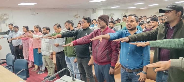 जमुई. राजकीय पॉलिटेक्निक कालेज जमुई के सभागार में मंगलवार को समाज कल्याण विभाग, बिहार सरकार के निर्देश पर नशामुक्त भारत अभियान के तहत सामूहिक शपथ कार्यक्रम का आयोजन किया गया. कार्यक्रम की अध्यक्षता संस्थान के प्राचार्य डॉ नीरज कुमार सिंह ने की. इस अवसर पर प्राचार्य, सभी व्याख्याता एवं बड़ी संख्या में छात्र-छात्राएं मौजूद रहे. शपथ ग्रहण कार्यक्रम के दौरान सभी ने समाज से नशा उन्मूलन तथा स्वस्थ और नशामुक्त भारत बनाने का संकल्प लिया. प्राचार्य डॉ सिंह ने कहा कि नशा समाज और युवा पीढ़ी के लिए गंभीर खतरा है. इस पहल का मुख्य उद्देश्य युवाओं को नशे से दूर रखना और उन्हें जागरूक बनाना है, ताकि एक स्वस्थ, सशक्त और नशामुक्त भारत का निर्माण हो सके.