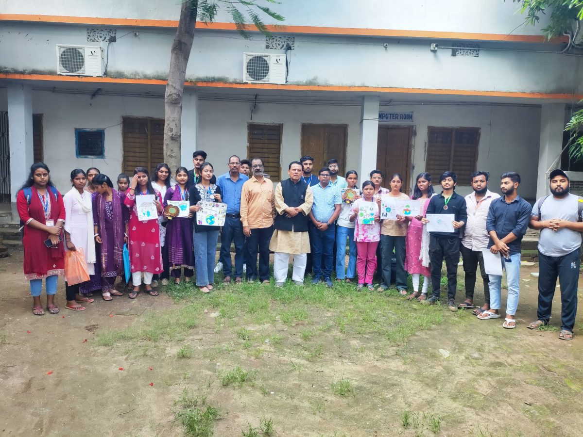 झाझा. मुख्यालय स्थित देव सुंदरी मेमोरियल महाविद्यालय परिसर में शुक्रवार को विश्व जनसंख्या दिवस के अवसर पर राष्ट्रीय सेवा योजना इकाई एवं महाविद्यालय स्वास्थ्य केंद्र के संयुक्त तत्वावधान में पेंटिंग, क्वीज, भाषण प्रतियोगिता का आयोजन किया गया. प्राचार्य प्रो डॉ अजफर शम्सी ने कहा कि जनसंख्या यदि नियंत्रित रहेगी, तभी देश का सर्वांगीण विकास संभव है.पेंटिंग प्रतियोगिता में छात्रा सेजल कुमारी ने प्रथम स्थान, अमीषा गुप्ता ने द्वितीय स्थान, जबकि प्रिया कुमारी और खुशबू कुमारी ने संयुक्त रूप से तृतीय स्थान प्राप्त किया. क्वीज में छात्रा अमीषा गुप्ता ने प्रथम स्थान, सोनाली केसरी और पियूष भारती ने द्वितीय, जबकि प्रियांशु भारती और राहुल राज ने तृतीय स्थान प्राप्त किया. प्राचार्य ने विजेता प्रतिभागियों को सम्मानित किया. मौके पर प्रो राकेश पासवान, प्रो ईश्वर कुमार पासवान, संजय चौधरी, संतोष नारायण, नरेंद्र सिंह सहित महाविद्यालय के कई शिक्षक व छात्र-छात्राएं उपस्थित थे. कार्यक्रम का समापन पुरस्कार वितरण और राष्ट्रगान के साथ हुआ. इस दौरान काफी संख्या में छात्र-छात्रा उपस्थित थी.