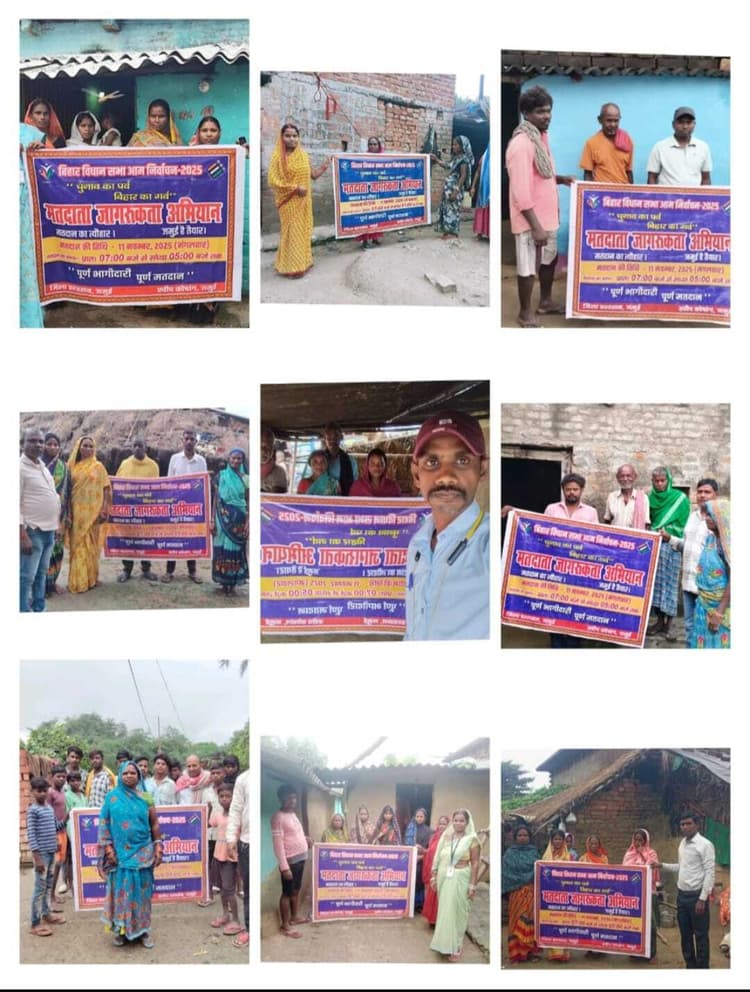 Sikandra Assembly News 2025 : जमुई . आगामी विधानसभा चुनाव को लेकर जिला प्रशासन के निर्देशानुसार मतदाता जागरूकता अभियान के तहत रविवार को सिकंदरा प्रखंड के क्षेत्र के विभिन्न पंचायतों के महादलित टोलाें में जागरूकता कार्यक्रम आयोजित किया गया. इस दौरान पोहे, कुमार, सबलबीघा, खरडीह, भुल्लो, इटासागर, मथुरापुर सहित कई टोला में विकास मित्र एवं शिक्षा सेवकों ने ग्रामीणों को मतदान के महत्व व अधिकार की जानकारी दी. लोगों को बताया गया कि मतदान लोकतंत्र की सबसे बड़ी शक्ति है और प्रत्येक नागरिक को अपने वोट का प्रयोग अवश्य करना चाहिए. कार्यक्रम के दौरान मतदाताओं को मतदान समय प्रातः 7:00 बजे से संध्या 5:00 बजे तक मतदान का समय की जानकारी दी गयी. महिलाओं, युवाओं और वरिष्ठ नागरिकों ने उत्साहपूर्वक भाग लेकर शत-प्रतिशत मतदान”का संकल्प लिया. कार्यक्रम के अंत में एक-एक वोट लोकतंत्र की नींव को मजबूत बनाता है आपका वोट, आपका अधिकार, आपका भविष्य संदेश के साथ सभी को मतदान दिवस पर बूथ तक पहुंचने की अपील की गई.