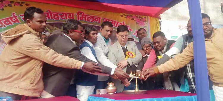 लक्ष्मीपुर. प्रखंड मुख्यालय स्थित मैदान में रविवार को आदिवासी सामाजिक व सांस्कृतिक विकास समिति लक्ष्मीपुर-बरहट की ओर से सोहराय मिलन समारोह का आयोजन किया गया. जिसका उद्घाटन समाजसेवी सह चिकित्सक डॉ नीरज साह, समाजसेवी संजीव कुमार के साथ-साथ अन्य प्रबुद्ध जनों ने किया. कार्यक्रम का शुभारंभ आदिवासी समाज की युवती द्वारा स्वागत गीत व नृत्य से किया गया. डॉ नीरज साह ने कहा कि आदिवासी समाज आज भी अपनी संस्कृति को बचाये हुए हैं. आवश्यकता है कि आदिवासी समाज के युवा-युवती शिक्षित हों. आप शिक्षित होकर ही अपने समाज का चतुर्दिक विकास कर सकते हैं. उन्होंने कहा कि इस तरह के कार्यक्रम में भाग लेने से मुझे काफी हर्ष की अनुभूति हुई है. इस दौरान उन्होंने आदिवासी समाज युवा वर्ग को हर संभव सहयोग करने की बात कही. कार्यक्रम को युवा समाजसेवी संजीव कुमार, स्टीफेन सोरेन, राजेश मरांडी, कृष्णा हेंब्रम सहित अन्य लोगों ने भी संबोधित किया और लोगों को नशा से मुक्त रहने, शिक्षा की ओर अग्रसर होने को लेकर प्रेरित किया. मौके पर रामजी मुर्मू, बीरबल टुडू, नारायण हेंब्रम, अरुण मुर्मू, विजय मरांडी आदि अतिथि के रूप में उपस्थित थे. समारोह की अध्यक्षता अरुण हंसदा ने किया जबकि संचालन सुमन मरांडी ने किया. समारोह को सफल बनाने में सुरेश हेंब्रम, विष्णुदेव हांसदा, रंजीत हांसदा, बिरेंद्र मुर्मू, रंजीत हांसदा, रमेश मरांडी तथा रामदास मरांडी ने सराहनीय सहयोग दिया. इस दौरान काफी संख्या में आदिवासी समाज के लोग उपस्थित थे.