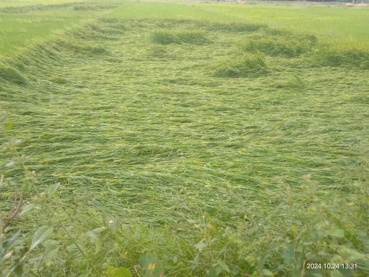 गिद्धौर. चक्रवाती तूफान दाना को लेकर जारी अलर्ट से किसान चिंतित नजर आने लगे हैं, हुआ भी वही जिसका डर किसानों को था. दरअसल, बंगाल की खाड़ी से उठे चक्रवाती तूफान डाना के दस्तक देने से बीते गुरुवार की देर रात से ही जमकर हुई बारिश ने किसानों के फसलों पर आफत बनकर बरसी. तेज बारिश व हवा से जिले भर में कई एकड़ धान की फसल पानी में गिर गयी. इस दौरान सबसे अधिक नुकसान गिद्धौर प्रखंड के पतसंडा, कोल्हुआ, सेवा, रतनपुर पंचायत के भौराटांड़ गांव के किसानों को हुआ. जहां लगभग सैकड़ों एकड़ से ज्यादा खेत में लगे धान की फसल पानी में गिर गयी. जिससे किसानों को हजारों रुपये की फसल के नुकसान होने की चिंता सता रही है, किसान अर्जुन यादव, प्रवीण सिंह, अमित दास, मोहन यादव, विजय राम, मनोज यादव, पप्पू चौरसिया, शंकर यादव, विमल मिश्रा ने बताया कि गुरुवार से ही देर रात भारी बारिश से हमारे बहियार में दर्जनों एकड़ में लगी धान का फसल पानी में गिरकर बर्बाद हो गयी. छठ पूजा के बाद धान कटाई का समय है, लेकिन इस समय पानी और तेज हवा दोनों एक साथ किसानों पर बनकर बरस रही है, किसानों का कहना है कि अगर पानी और तूफान ज्यादा कहर बरसाएगी तो किसानों की कमर टूट जाएगी. पूरे प्रखंड में लगे धान की फसल बर्बाद हो जाएगा. कई किसानों का कहना है बड़ी मुश्किल से इस बार धान की खेती में अच्छी पैदावार होने की उम्मीद जगी थी, जिससे इस बार किसानों को अच्छा मुनाफा मिलने की उम्मीद थी, अब दाना तूफान की दस्तक देने से तेज हवा चलने से तैयार फसल खेत में ही सिमट कर रह जाएगी. किसानों ने बताया कि यहां के दर्जनों किसानों के लिए एकमात्र आमदनी का रास्ता धान की खेती ही होती है. जहां से पूरे साल का परिवार का भरण पोषण होता है. इधर किसानों के बीच दाना चक्रवाती तूफान के कारण फसल के नुकसान से किसानों में मायूसी देखी जा रही है.