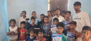 बच्चों के बीच बांटी गयी पाठ्य सामग्री