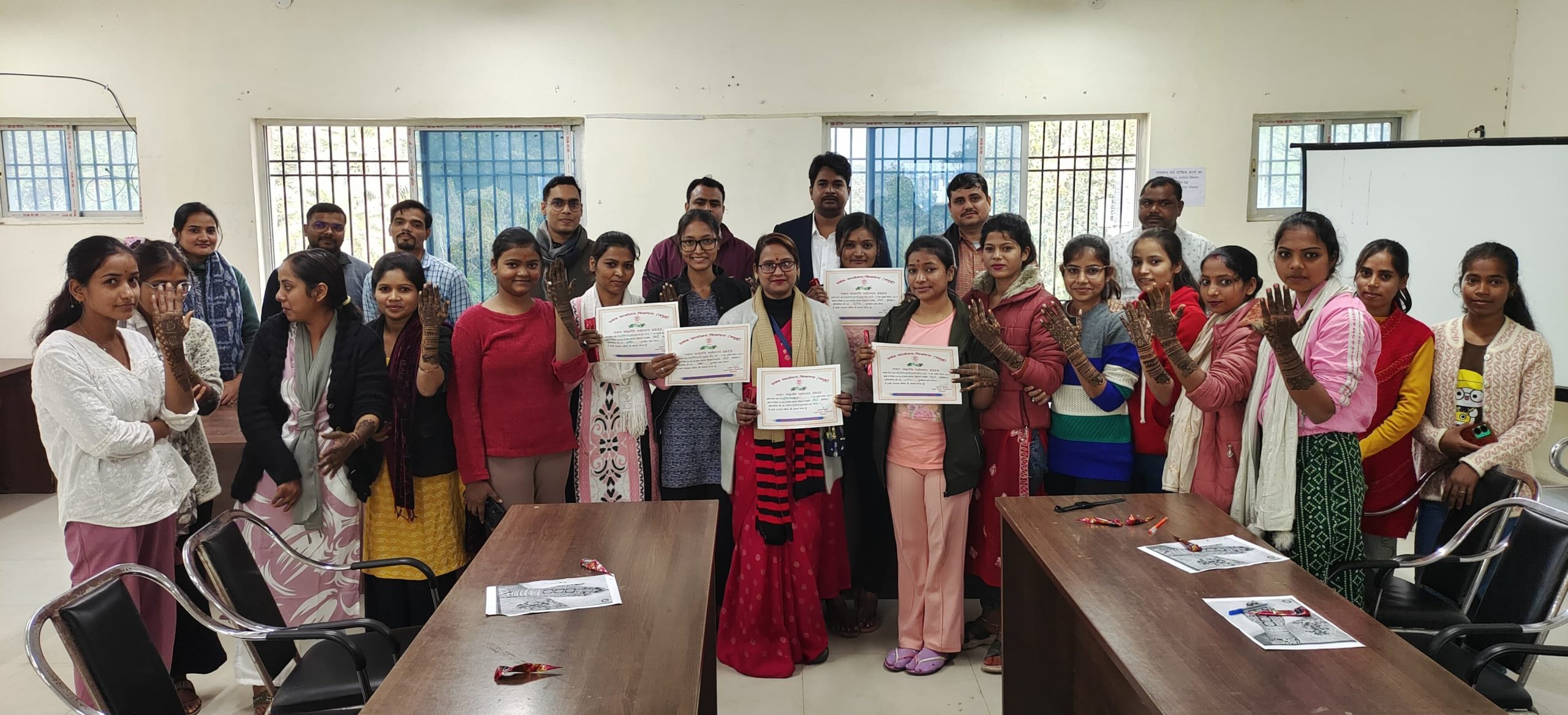 सिकंदरा. जिलाधिकारी के निर्देशानुसार प्रखंड कार्यालय के सभा भवन में सोमवार को मकर संक्रांति महोत्सव के अवसर पर पतंग एवं मेहंदी प्रतियोगिता आयोजित की गयी. कार्यक्रम का आयोजन बीडीओ अमित कुमार के नेतृत्व में किया गया. पतंग में लड़के तो मेहंदी प्रतियोगिता में लड़कियों ने भाग लिया. मेहंदी प्रतियोगिता सुहाग लेडीज ब्यूटी पार्लर की संचालिका सुचिता गोस्वामी के नेतृत्व में करवायी गयी. मेहंदी प्रतियोगिता में कोमल कुमारी प्रथम, काजल कुमारी द्वितीय व रजिया खातून तीसरे स्थान पर रही. सफल प्रतिभागियों को बीडीओ अमित कुमार व उप प्रमुख नैयर खान ने प्रशस्ति पत्र व पुरस्कार देकर सम्मानित किया. वहीं उत्कृष्ट कार्य के लिए सुचिता गोस्वामी को भी सम्मानित किया गया. इसके बाद पतंग प्रतियोगिता में प्रथम स्थान प्राप्त करने वाले मो. सुफियान, मो. तनवीर हसन व मो. आदिल को भी प्रशस्ति पत्र व पुरस्कार देकर सम्मानित किया गया. प्रतियोगिता में प्रधान लिपिक टुनटुन कुमार, आइटी मैनेजर रामानुज चक्रवर्ती, डाटा ऑपरेटर नेहा कुमारी, लेखपाल सज्जाद अली, लक्ष्मी, कोमल, रितु, अंजलि, निशु, दीपा, मुस्कान, रिंकी, काजल, सोनी, शोभा, सुरुचि, ज्योति, निशा सहित काफी संख्या में लड़कियों ने भाग लिया.