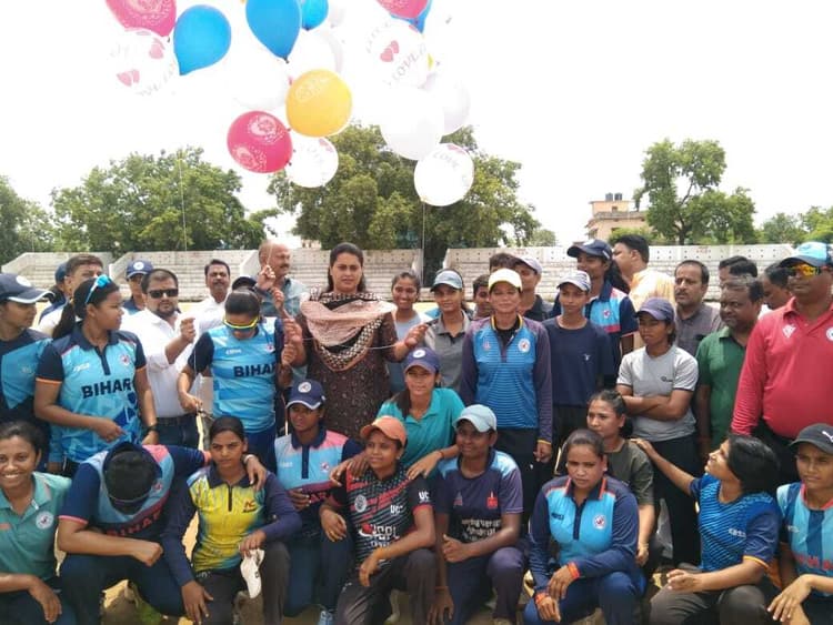 जमुई. बिहार सीनियर महिला वनडे क्रिकेट टूर्नामेंट का शुभारंभ गुरुवार को जमुई विधायक श्रेयसी सिंह ने किया. शुभारंभ के बाद मुख्य अतिथि श्रेयसी सिंह, बृजनंदन सिंह, अमित केशरी ने सभी खिलाड़ियों से एक-एक कर परिचय प्राप्त कर उनको प्रोत्साहित किया. मैच वीमेंस सी टीम की खिलाड़ी और ए टीम की खिलाड़ी के बीच मुख्यालय स्थित श्रीकृष्ण सिंह स्टेडियम में खेला गया. इसमें वीमेंस सी टीम ने पहले बल्लेबाजी करते हुए 22.1 ओवरों में सभी विकेट खो कर 103 रन बनाये. इसमें बल्लेबाज प्रगति ने 32 और रचना ने 15 रनों का योगदान दिया. टीम ए की आर्या व प्रिया ने 3-3 विकेट लिये. 103 रनों के लक्ष्य का पीछा करने उतरी टीम ए ने 14.1 ओवरों में 1 विकेट खो कर लक्ष्य को हासिल कर लिया. इसमें आर्या और निक्की ने 39-39 रनों का योगदान दिया. इस प्रकार टीम ए ने मैच 9 विकेट से जीत लिया. प्लेयर ऑफ द मैच का पुरस्कार ए टीम की आर्या को दिया गया. मैच में अंपायर सचिन कुमार( मुजफ्फरपुर) और ताहीद हुसैन( मोतिहारी) थे. जबकि स्कोरर सुमन कुमार और शुभम सिंह राजपूत थे. मैच के दौरान सचिव इमरान अख्तर खान, बीसीएल के चेयरमैन संजय कुमार सिंह, राजेश कुमार, नितेश केशरी, श्रीकांत केशरी, सतेंद्र सिंह समेत दर्जनों खेल प्रेमी मौजूद थे.