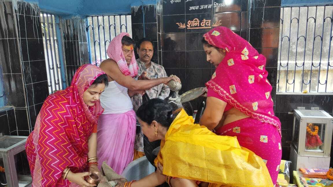 जमुई. जिला मुख्यालय स्थित अनुमंडल कार्यालय परिसर में शनि देव के प्रतिमा स्थापना तथा प्राण-प्रतिष्ठा को लेकर चल रहे तीन दिवसीय अनुष्ठान का मंगलवार को समापन हो गया. तीसरे दिन विधिपूर्वक भगवान शनिदेव की प्रतिमा का अधिवास, न्यास अभिषेक इत्यादि करते हुए प्राण-प्रतिष्ठा किया गया. मौके पर लोगों के बीच खिचड़ी, रसिया एवं खीर का महाप्रसाद वितरित किया गया. इस दौरान भगवान शनिदेव को छप्पन भोग लगाया गया, जिसमें बड़ी संख्या में लोगों ने हिस्सा लिया. प्राण-प्रतिष्ठा समारोह के मौके पर मंदिर के मुख्य पुजारी पंडित अजय झा एवं पंडित केशव आनंद झा भी इसमें शामिल थे.