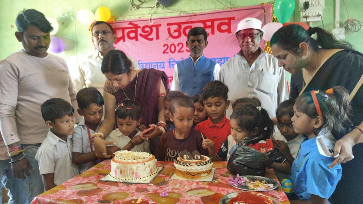 तिलक लगाकर नामांकित बच्चों का स्कूल में किया स्वागत