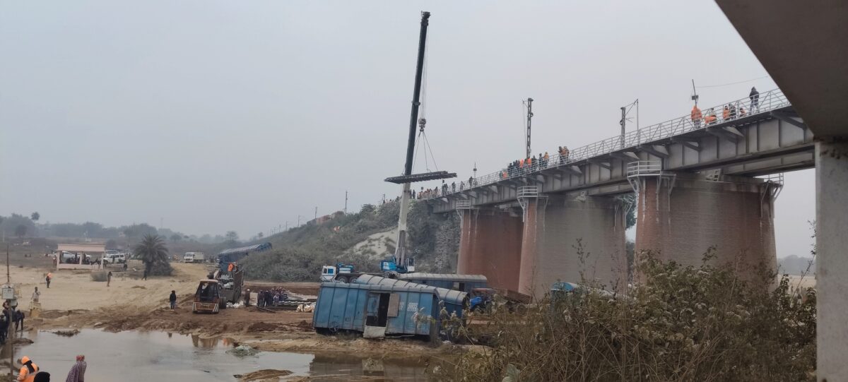 जसीडीह–झाझा मुख्य रेलखंड के बीच टेलवा ब्रिज संख्या 676 पर शनिवार रात करीब 11:10 बजे हुए भीषण रेल हादसे के बाद रेलवे का पूरा अमला लगातार युद्धस्तर पर बहाली कार्य में जुटा हुआ है.