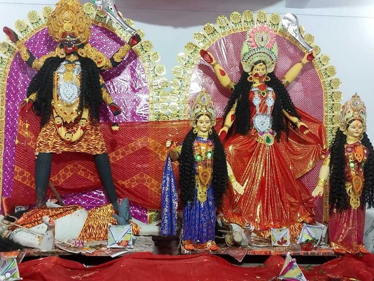 खैरा. खैरा दुर्गा मंदिर मैदान में नवनिर्मित मंदिर में महाकाली की प्रतिमा की प्राण प्रतिष्ठा बीते सोमवार की देर रात में की गयी. बीते सोमवार रात जैसे ही मंदिर का पट खुला सैकड़ों श्रद्धालु माता का दर्शन करने के लिए मंदिर प्रांगण में पहुंच गए. बताते चलें कि इस मंदिर में लगभग पांच दशक से प्रतिमा की स्थापना की जाती है. काली पूजा को लेकर दूर-दराज से श्रद्धालु मा काली की पूजा अर्चना करने मंदिर पहुंचे. काली पूजा को लेकर पूरे इलाके में भक्ति का माहौल देखने को मिल रहा है.