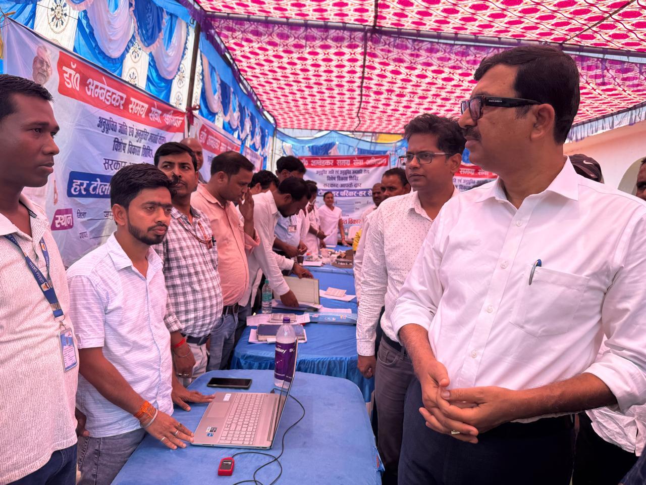 अलीगंज . बाबा साहेब डा भीमराव अंबेडकर समग्र सेवा अभियान के तहत जमुई जिले के अलीगंज प्रखंड अंतर्गत पुरसंडा पंचायत के भागलपुर टोला में शुक्रवार को विशेष विकास शिविर का आयोजन किया गया. बीडीओ अभिषेक भारती, सीओ रंजन कुमार दिवाकर ने बताया कि विशेष शिविर में शिक्षा, स्वास्थ्य, खाद्य एवं उपभोक्ता संरक्षण, सामाजिक सुरक्षा, ग्रामीण विकास, पीएचईडी, पंचायत राज, कल्याण विभाग सहित अन्य विभागों द्वारा स्टॉल लगाये गये. इस दौरान योजनाओं की जानकारी देने के साथ-साथ पात्र लाभार्थियों का निबंधन और सहायता भी की गयी. इस दौरान शिविर का निरीक्षण करने आये डीएम श्री नवीन ने लोगों को राशन कार्ड, मनरेगा जॉब कार्ड, कौशल विकास प्रमाण पत्र वितरण करते हुए कहा कि सरकार की मंशा है कि समाज के अंतिम पायदान पर खड़े व्यक्ति तक योजनाओं का लाभ पहुंचे. यह शिविर इसी उद्देश्य की पूर्ति का प्रयास है. इस दौरान उन्होंने ग्रामीणों की समस्याएं सुनीं और शीघ्र समाधान का भरोसा दिया. उन्होंने अधिकारियों को निर्देश देते कहा कि किसी भी पात्र व्यक्ति को सरकारी योजना की लाभ से वंचित न रखा जाये और कार्य में पारदर्शिता एवं संवेदनशीलता सुनिश्चित करें. शिविर में बड़ी संख्या में ग्रामीणों की भागीदारी रही. लोगों ने सरकार की इस पहल की सराहना करते हुए कहा कि पहली बार ऐसा महसूस हुआ कि सरकार वास्तव में हमारे द्वार तक आई है. इस दौरान विशेष कार्य पदाधिकारी नागमणि कुमार वर्मा, मनरेगा कार्यक्रम पदाधिकारी मो असलम हुसैन, प्रखंड कल्याण पदाधिकारी राजीव कुमार, जिला कल्याण पदाधिकारी मो रजी इमाम के साथ-साथ कई पदाधिकारी उपस्थित थे.