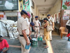 रेल पुलिस के उच्च अधिकारियों के निर्देश के आलोक में राजकीय रेल थानाध्यक्ष बृंद कुमार अपने सहयोगियों के साथ मंगलवार को रेलवे स्टेशन के सभी प्लेटफार्म पर उपस्थित रेलवे यात्रियों एवं उसके सामानों की गहन जांच की.